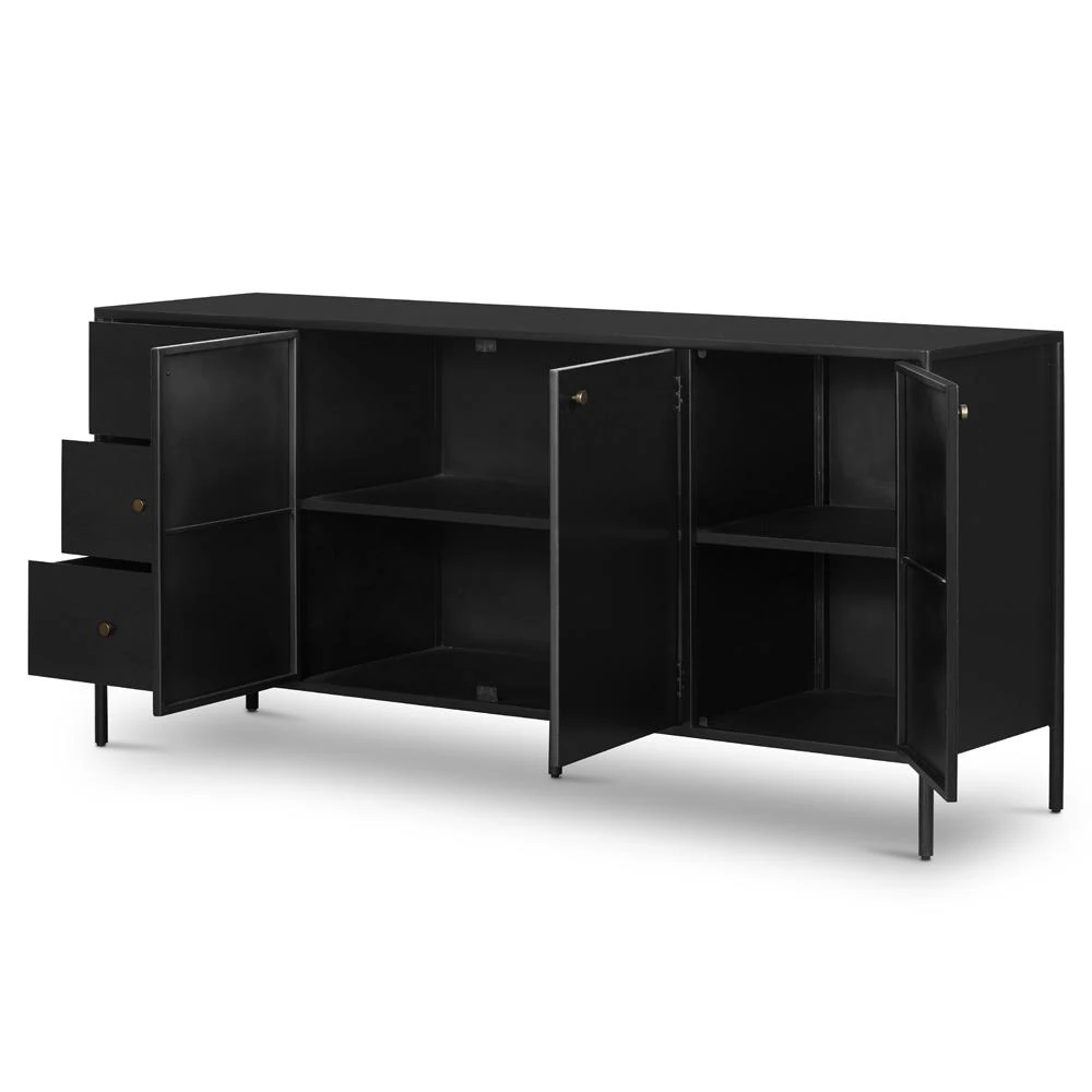 Sutton Industrial Loft Black Iron Bronze Hardware 3 Drawer Sideboard
