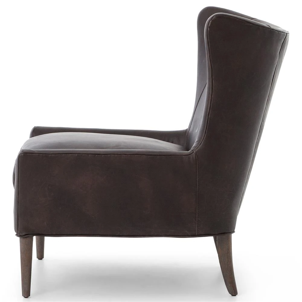 Hadley Rustic Brown Leather Wood Tufted Occasional Arm Chair