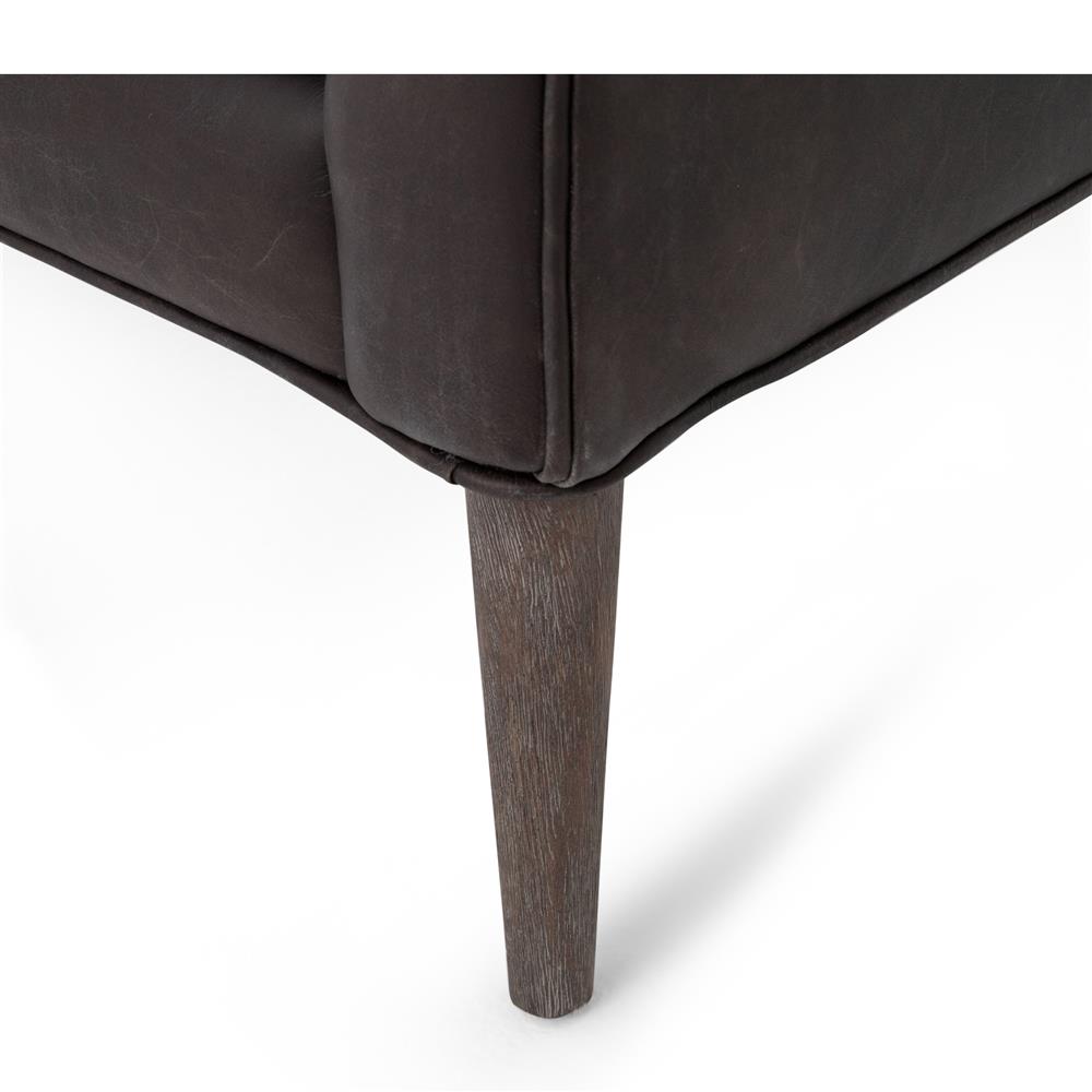 • Upholstered in vintage dark leather. Fabric content: top grain leather