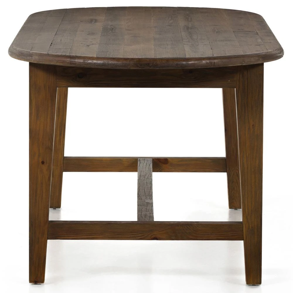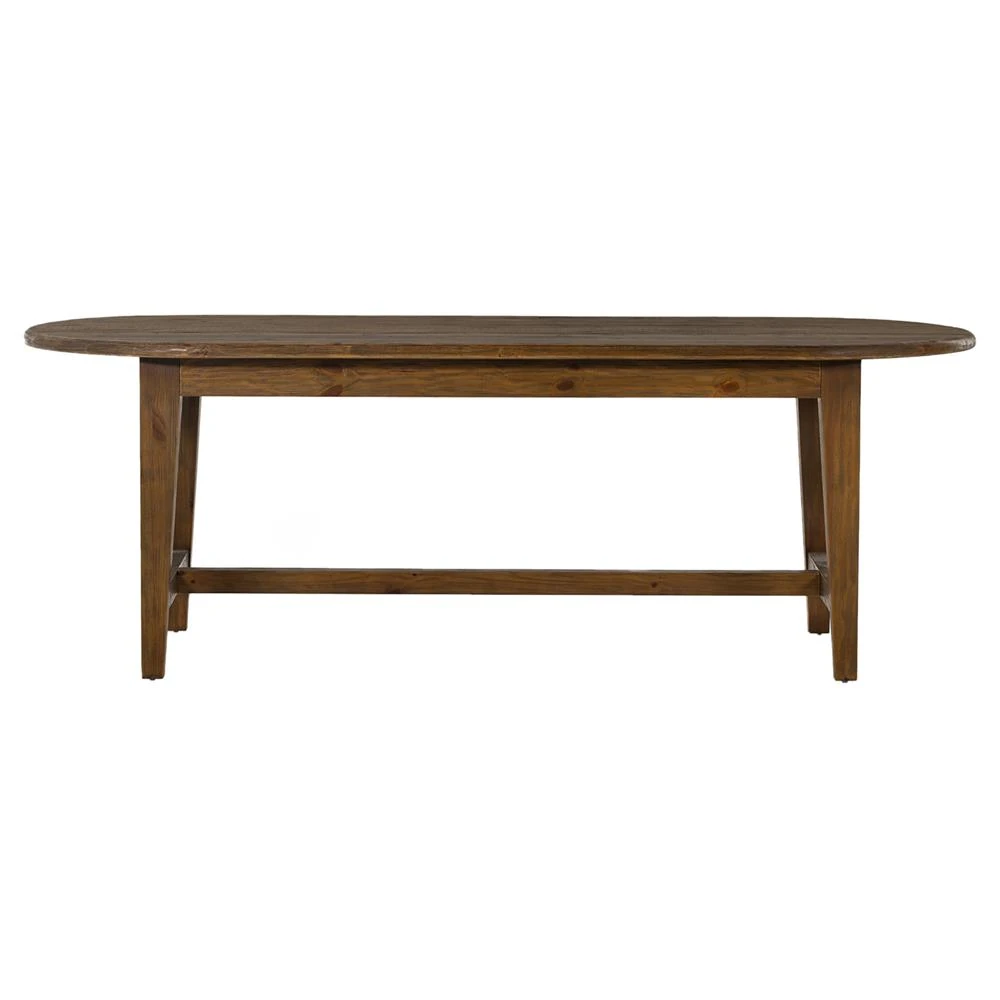 Nayden Rustic Lodge Brown Pine Wood Oval Trestle Dining Table - Small - 86.5"W