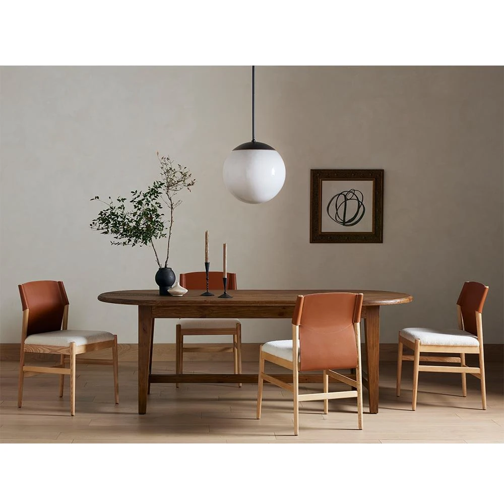 • Paris Rustic Lodge Brown Acacia Wood Oval Dining Table - 94"|Kathy Kuo Home