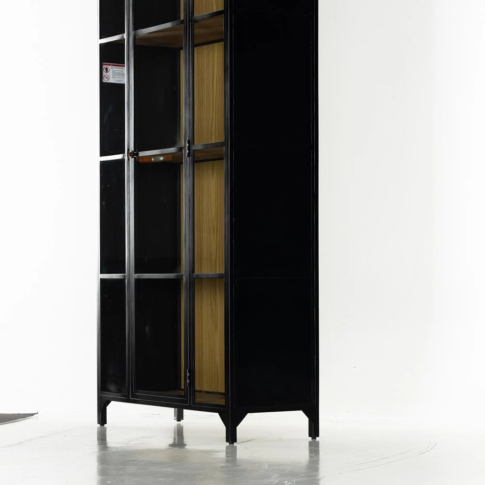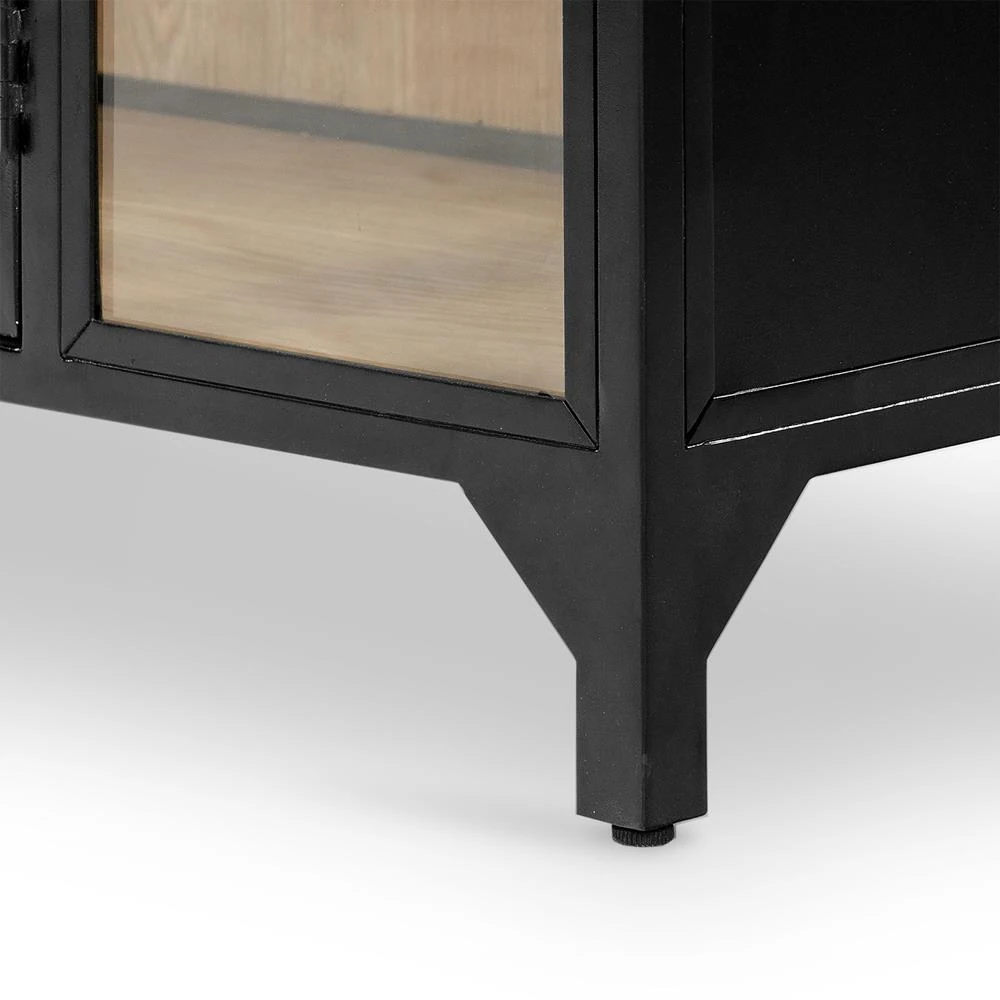 Stancil Industrial Brown Oak Wood Black Iron Clear Glass Door Arch Display Case