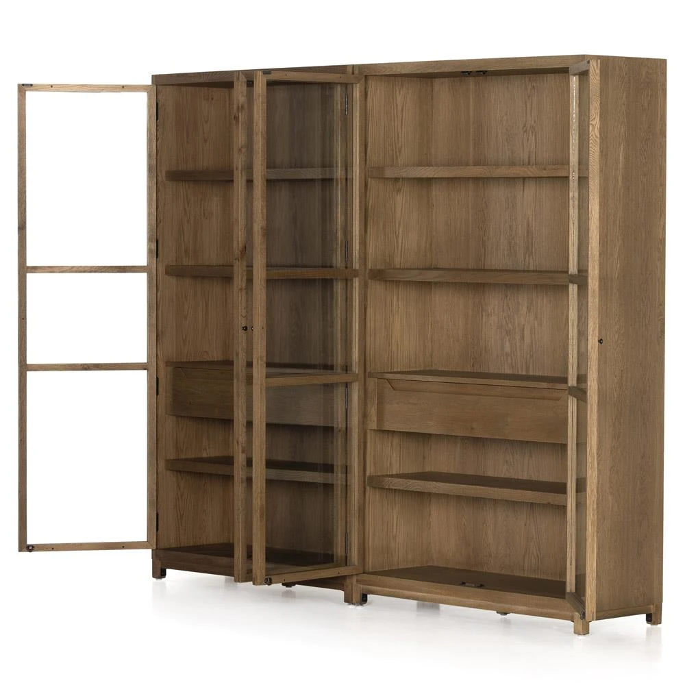 • Logen Coastal Beach Smoke Gray Oak Storage Bookcase|Kathy Kuo Home
