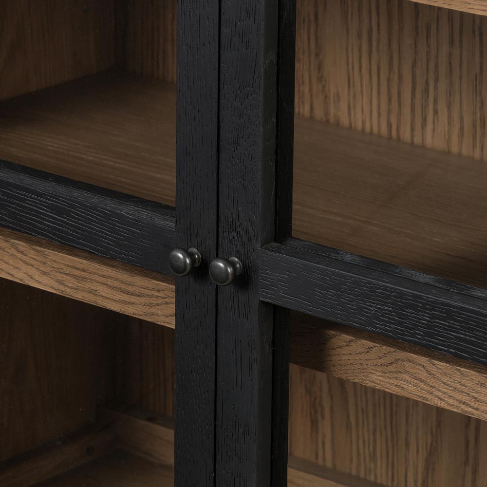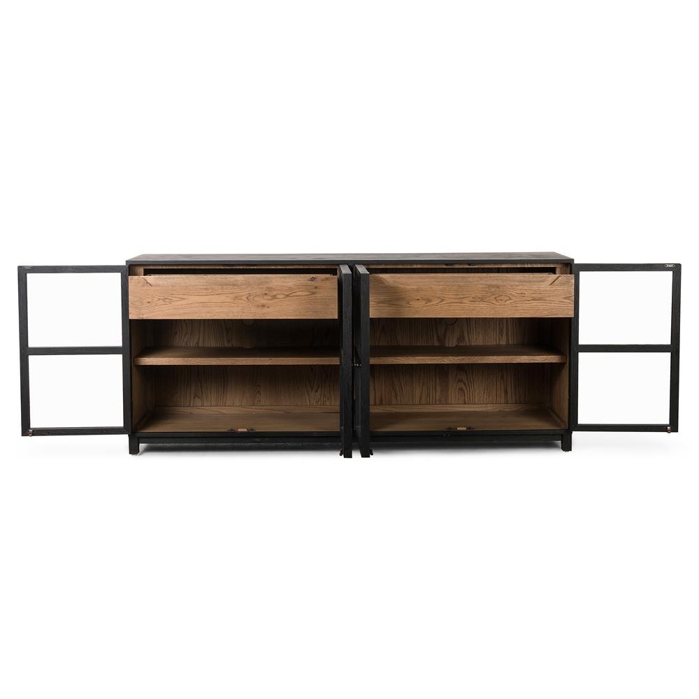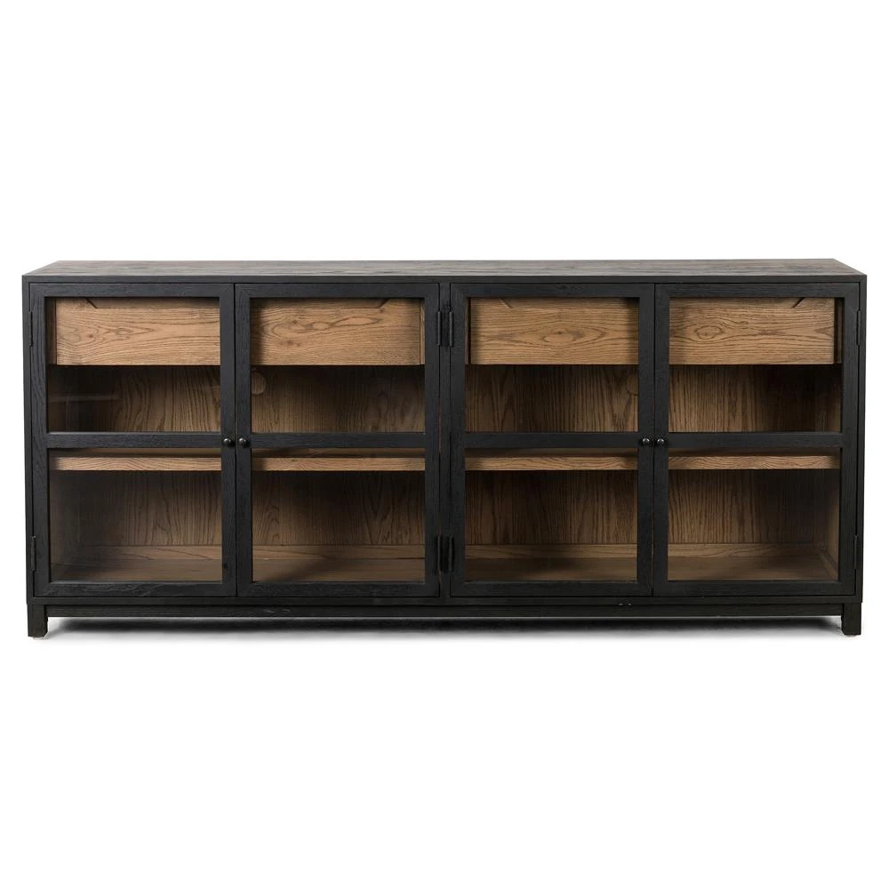 Clarence Rustic Lodge Black Oak Wood Clear Glass 4 Door Shelving Sideboard