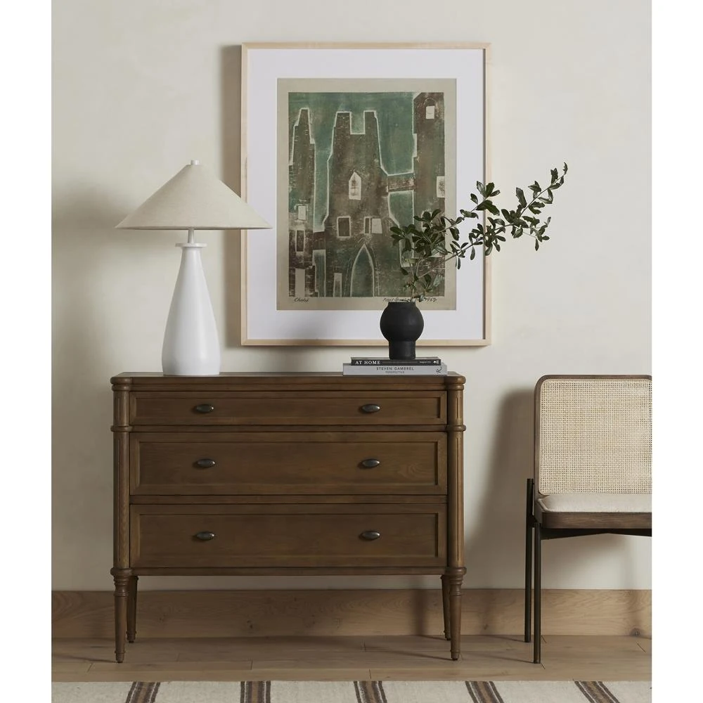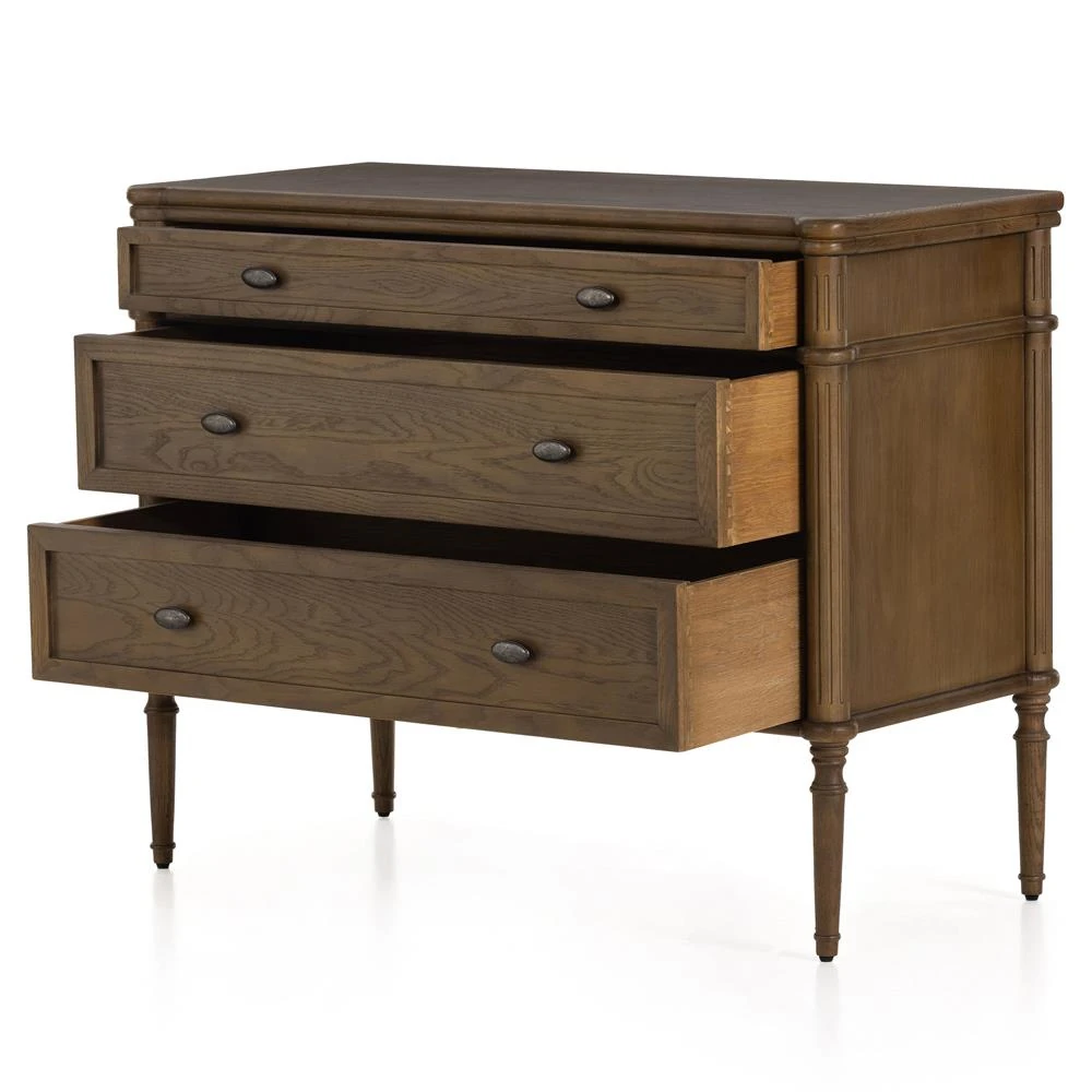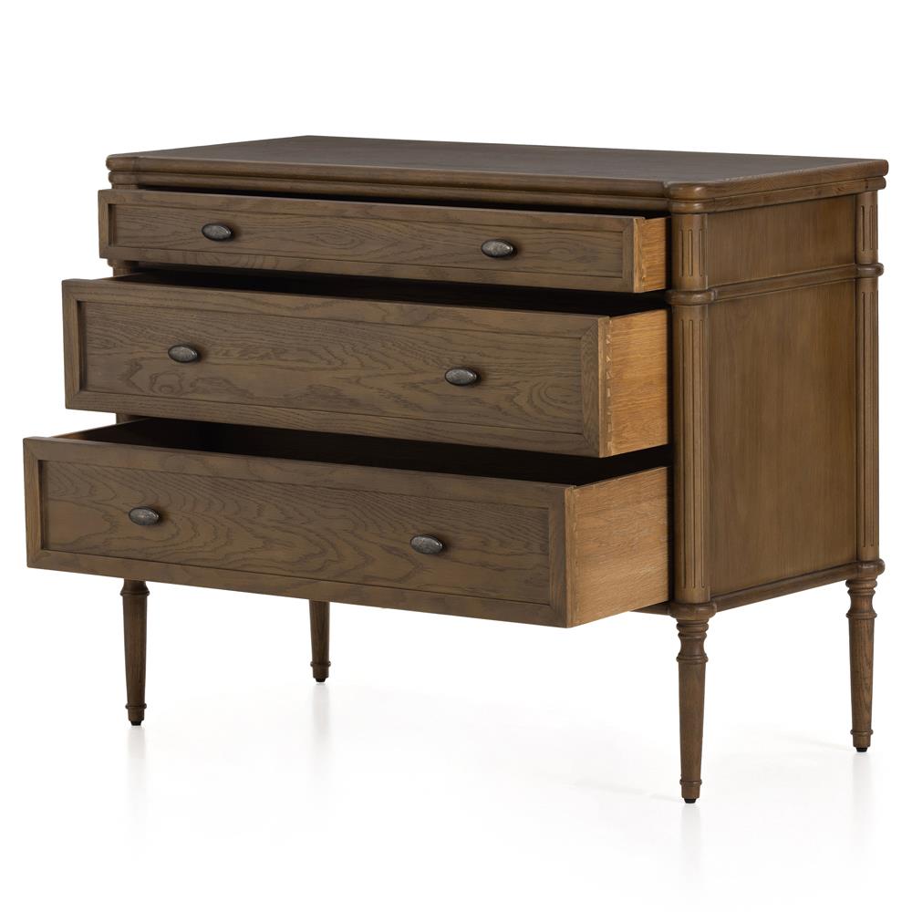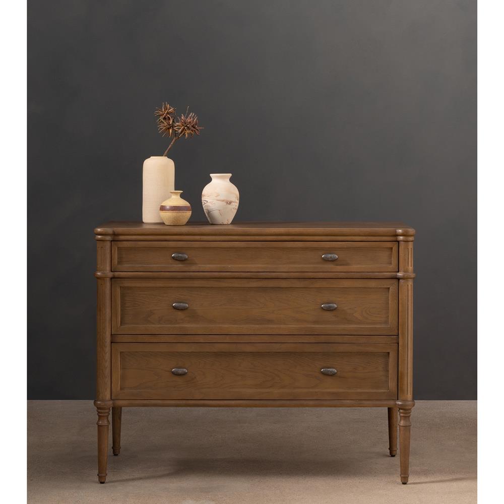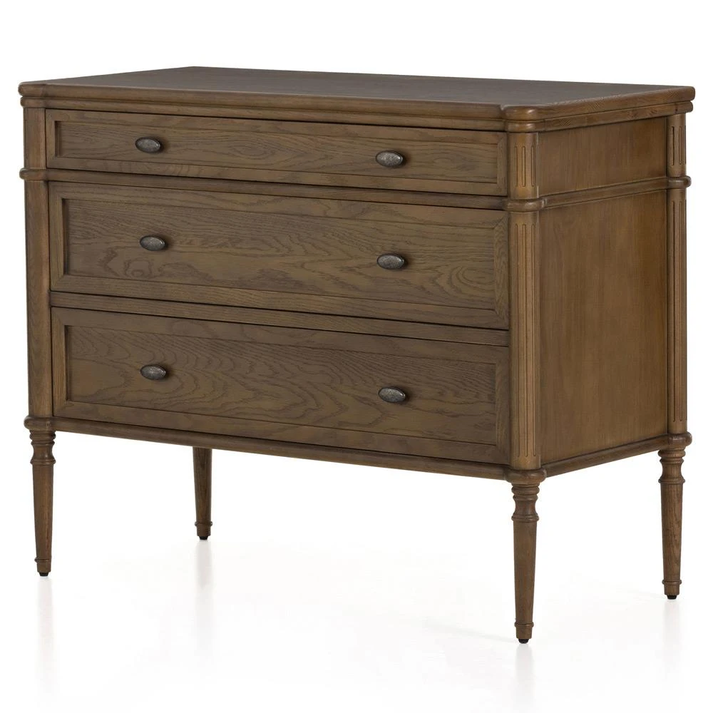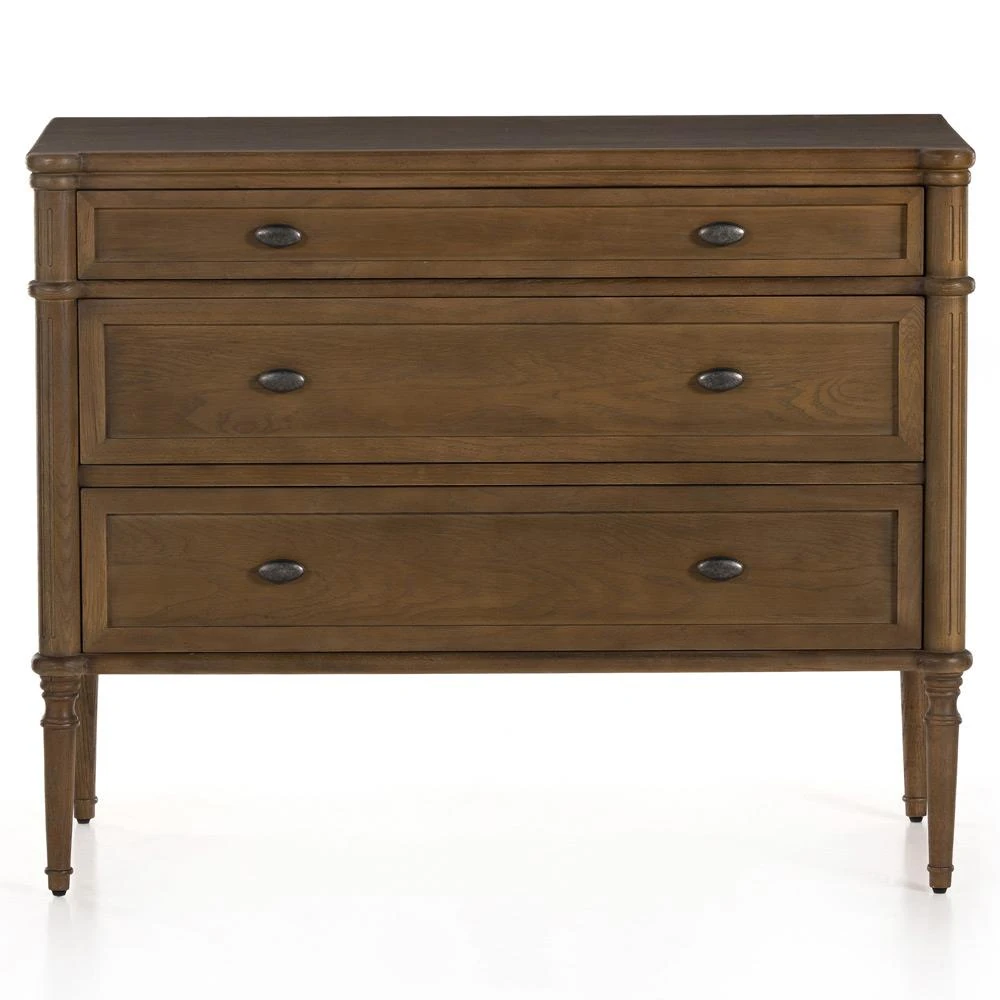 • Vance French Country Brown Oak Wood 3 Drawer Bachelor Chest|Kathy Kuo Home