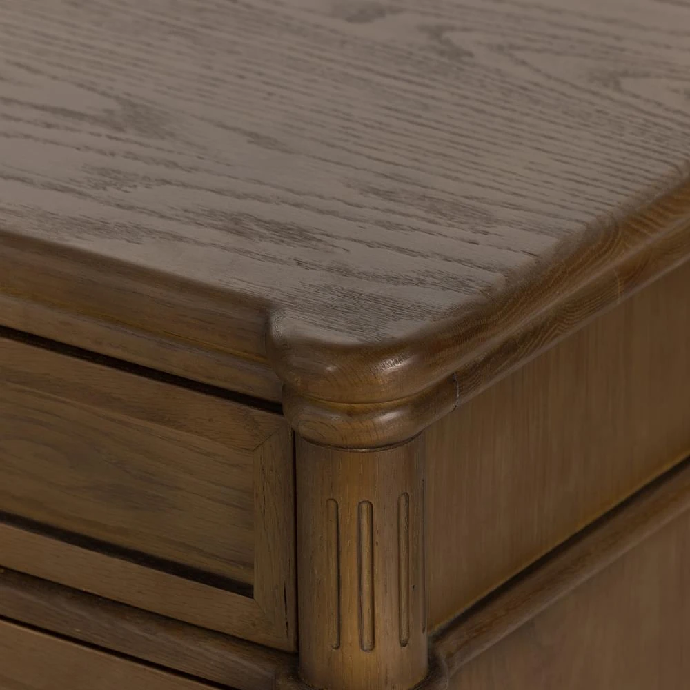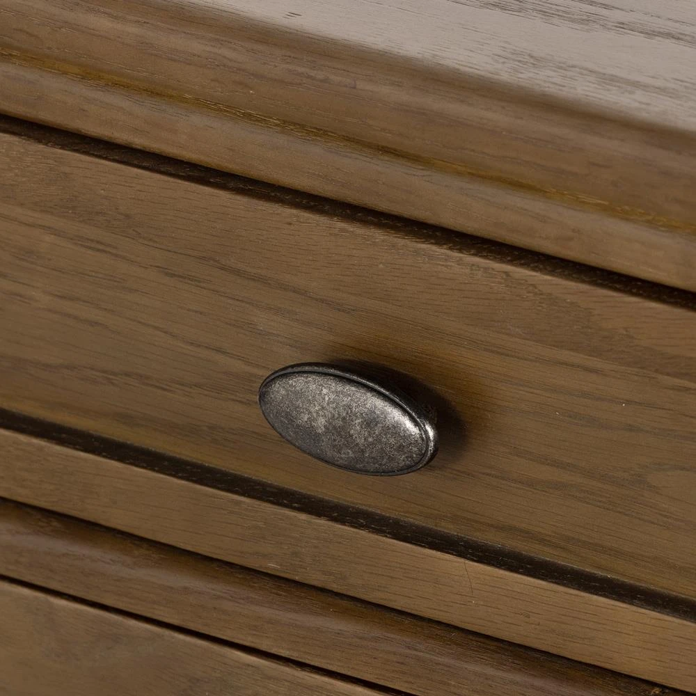 • Features a slim, solid oak legs; Features a vary-sized drawers bring antique European vibes to modern bedroom styling