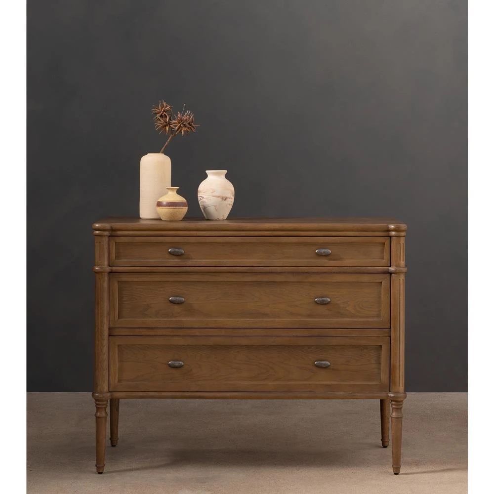 Vance French Country Brown Oak Wood 3 Drawer Bachelor Chest