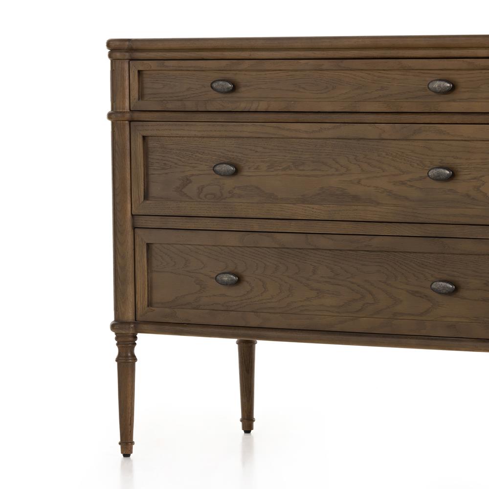 Andrea French Country Dark Brown Oak Wood Double Dresser