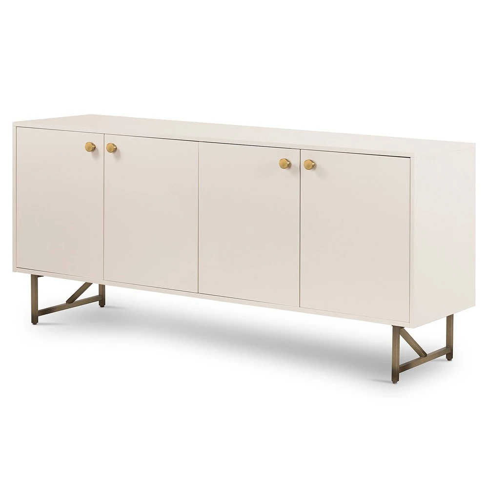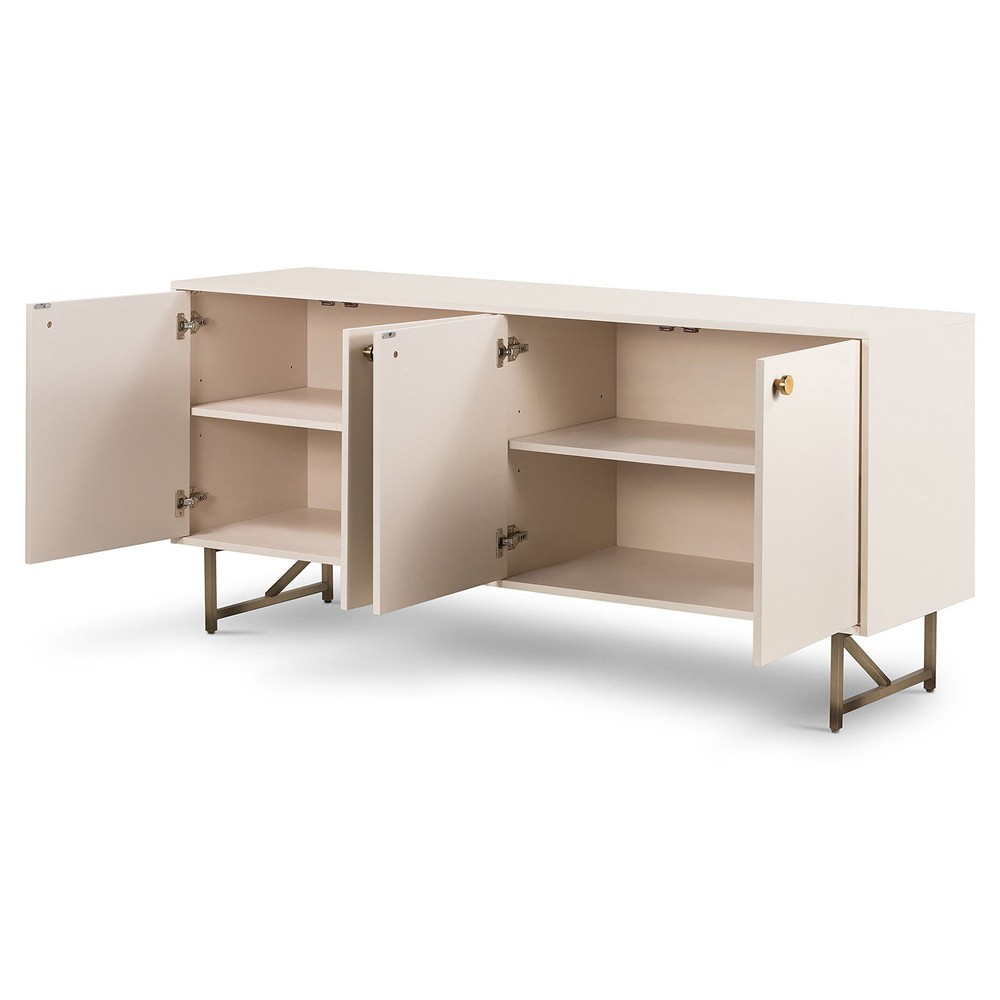 Valdo French Country Beige Hardwood Gold Stainless Steel Base 4 Door Sideboard