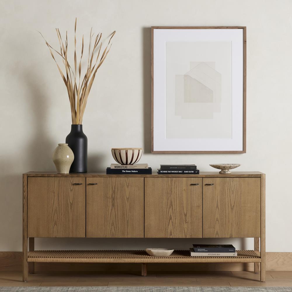 Alarisse Coastal Beach Vanilla Oak Woven Cane Sideboard