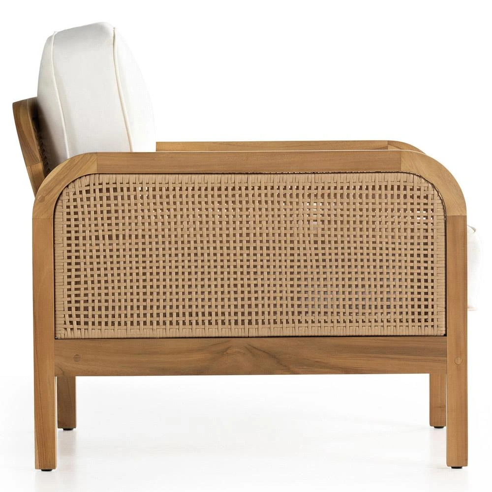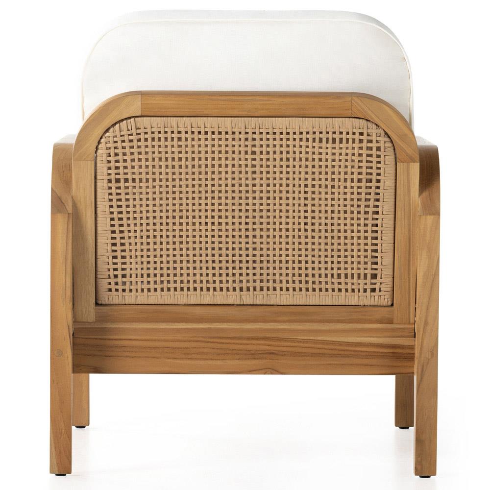 Tropica Coastal Beach Natural Teak White Upholstered Faux Rattan Outdoor Lounge Chair