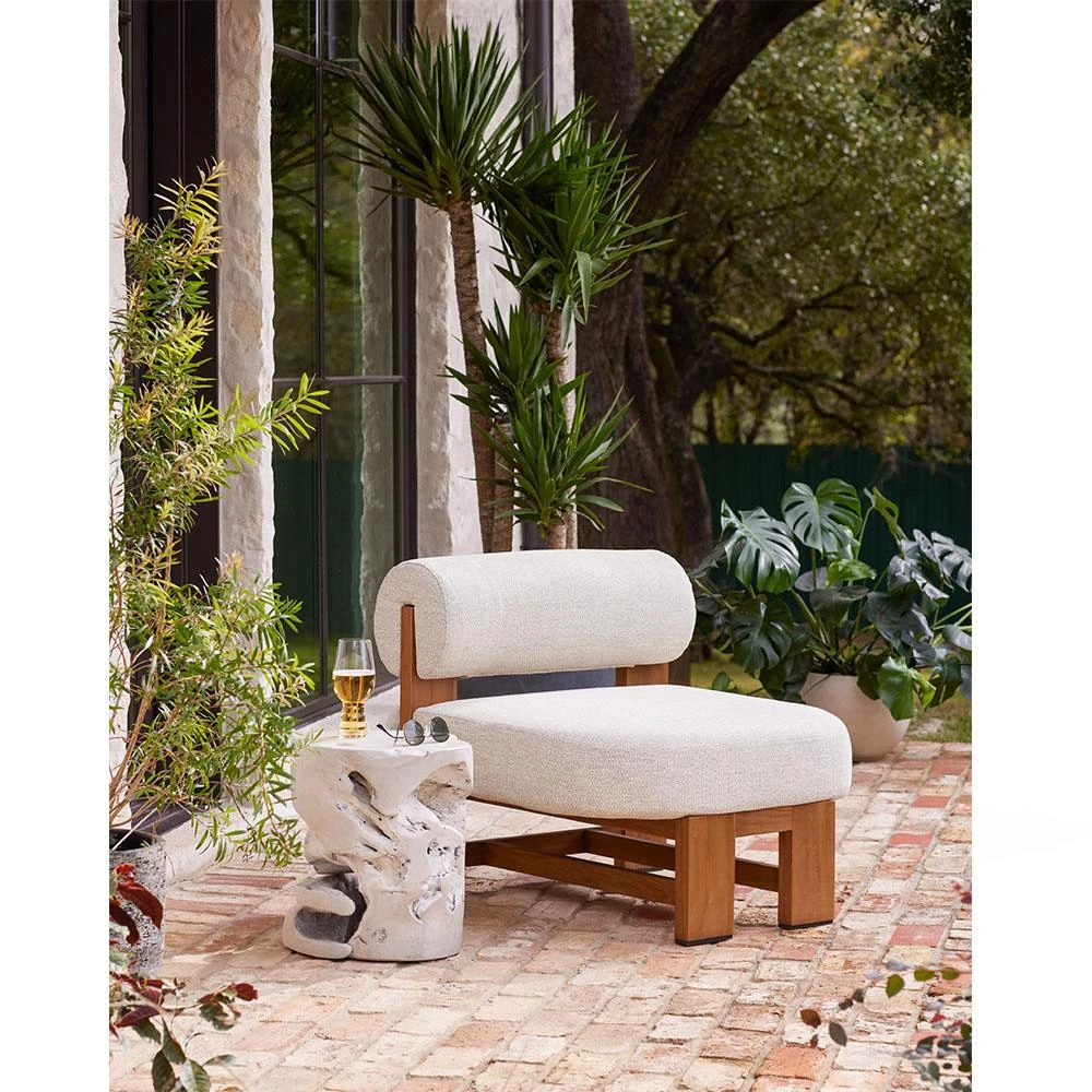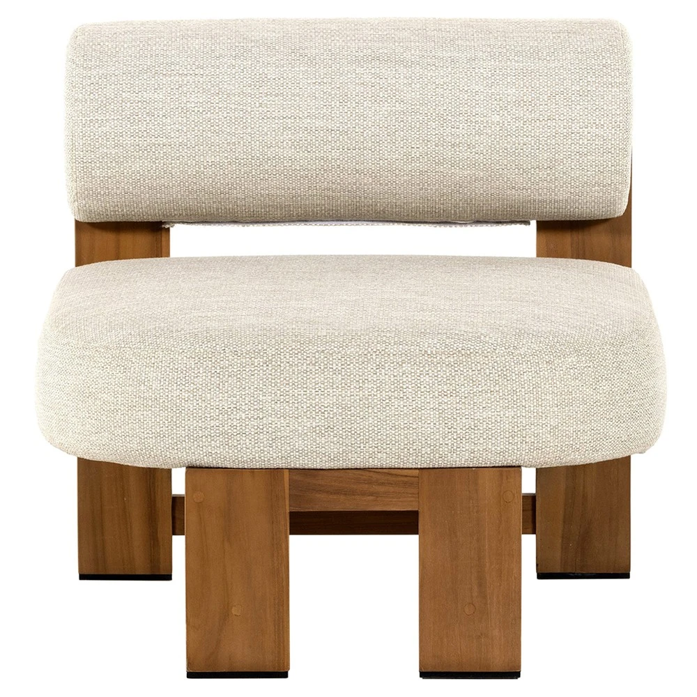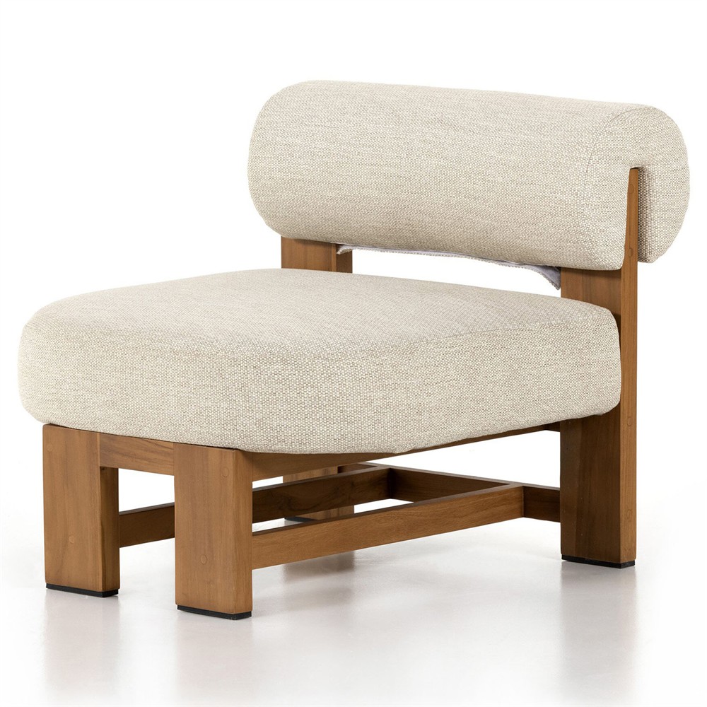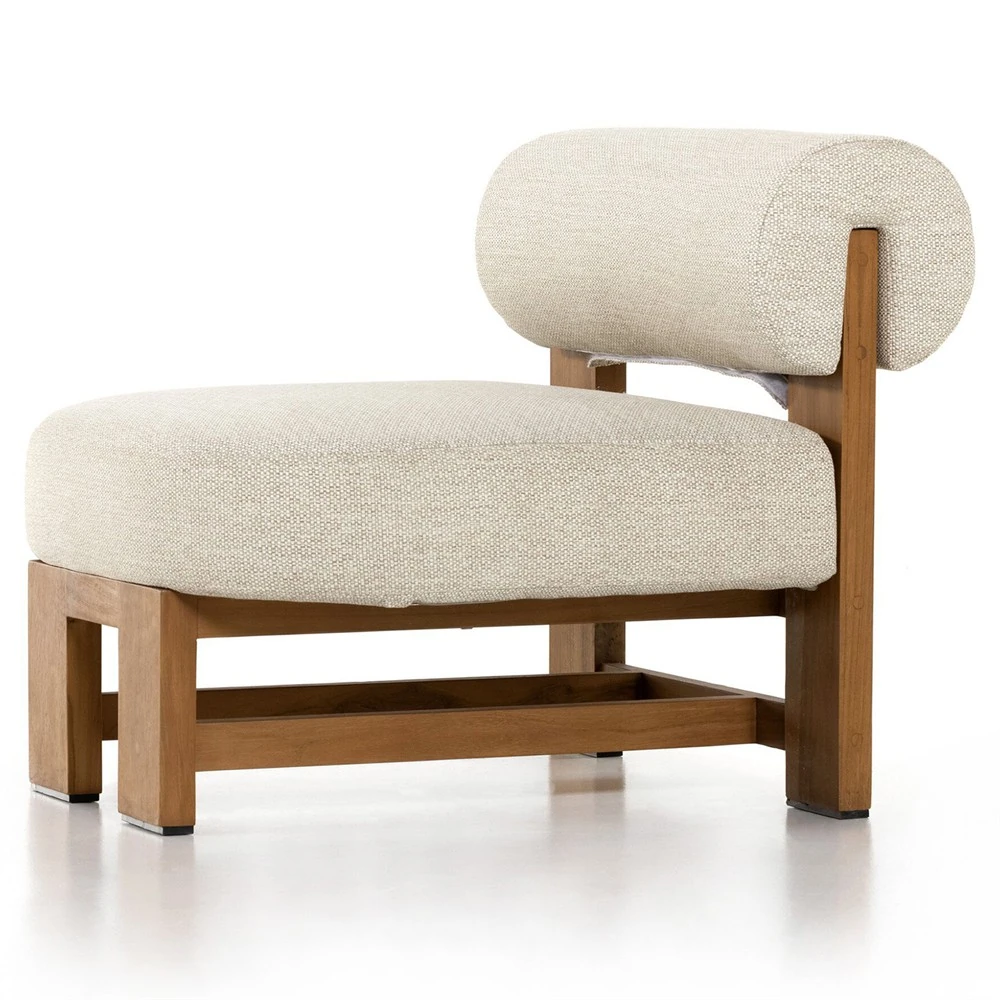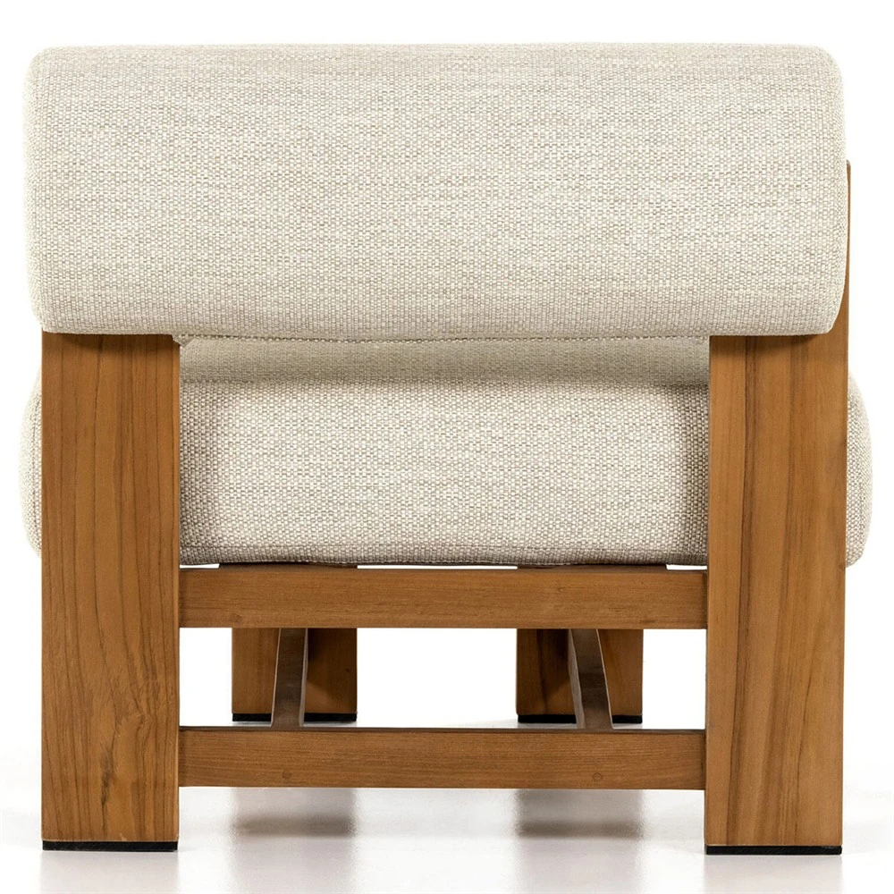 Carlo Mid Century Beige Upholstered Natural Teak Wood Frame Outdoor Lounge Chair