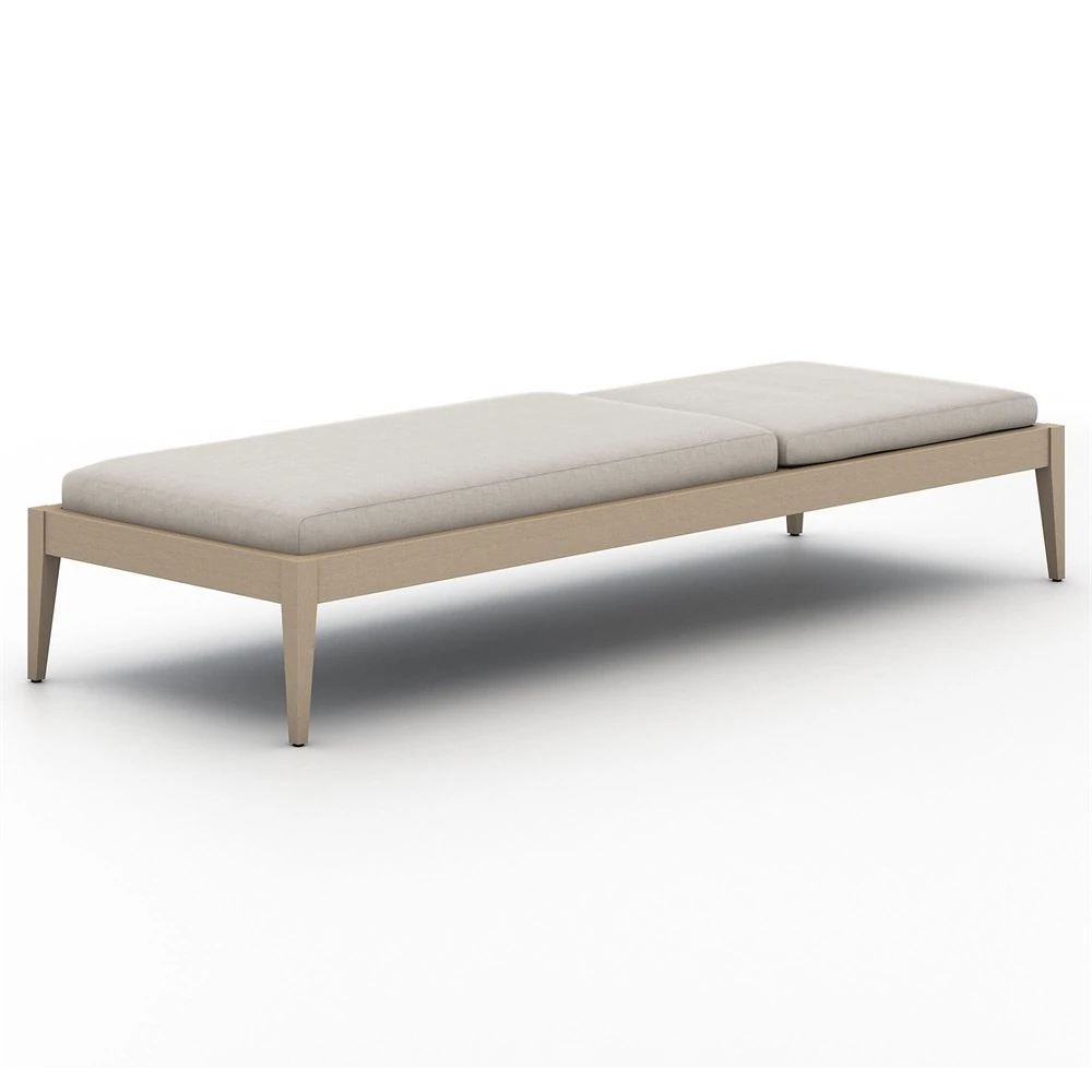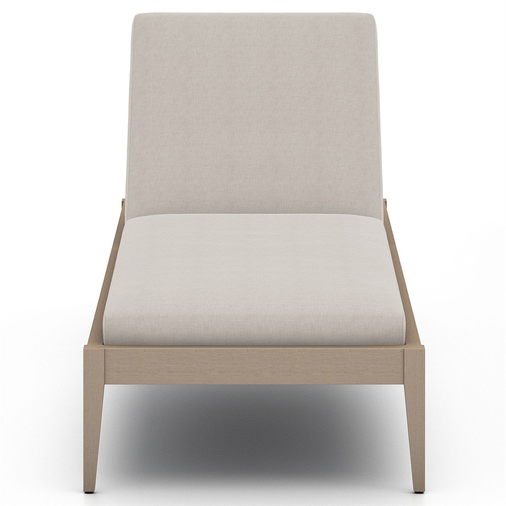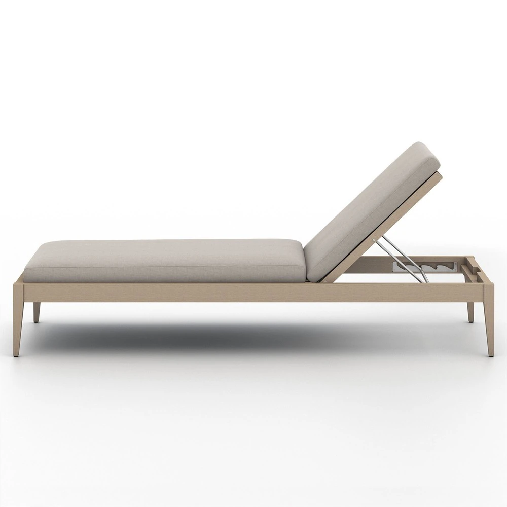 Cheryl Classic Light Grey Cushion Natural Teak Wood Frame Outdoor Chaise Lounge