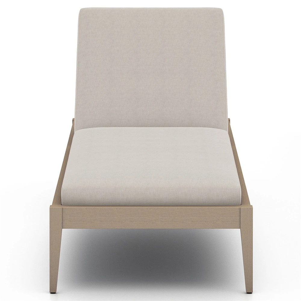 • Cheryl Classic White Cushion Natural Teak Wood Frame Outdoor Chaise Lounge|Kathy Kuo Home