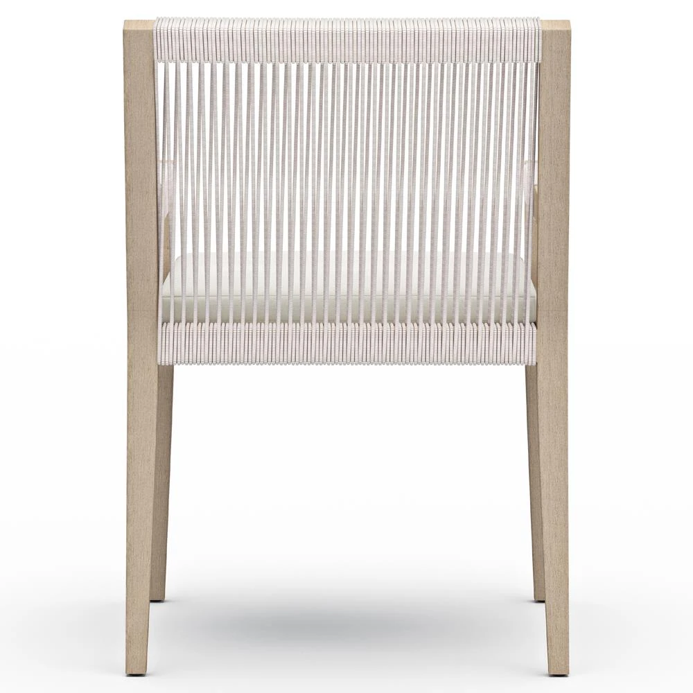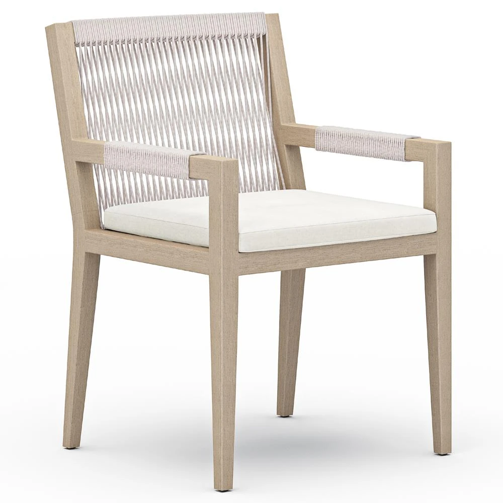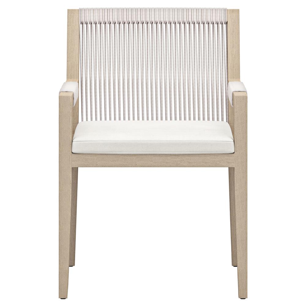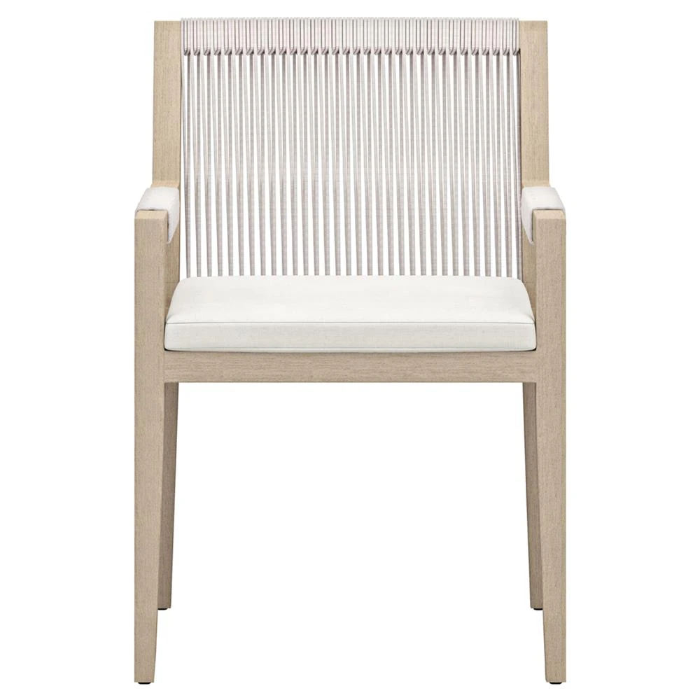 Cheryl Modern White Cushion Woven Rope Natural Teak Outdoor Dining Arm Chair