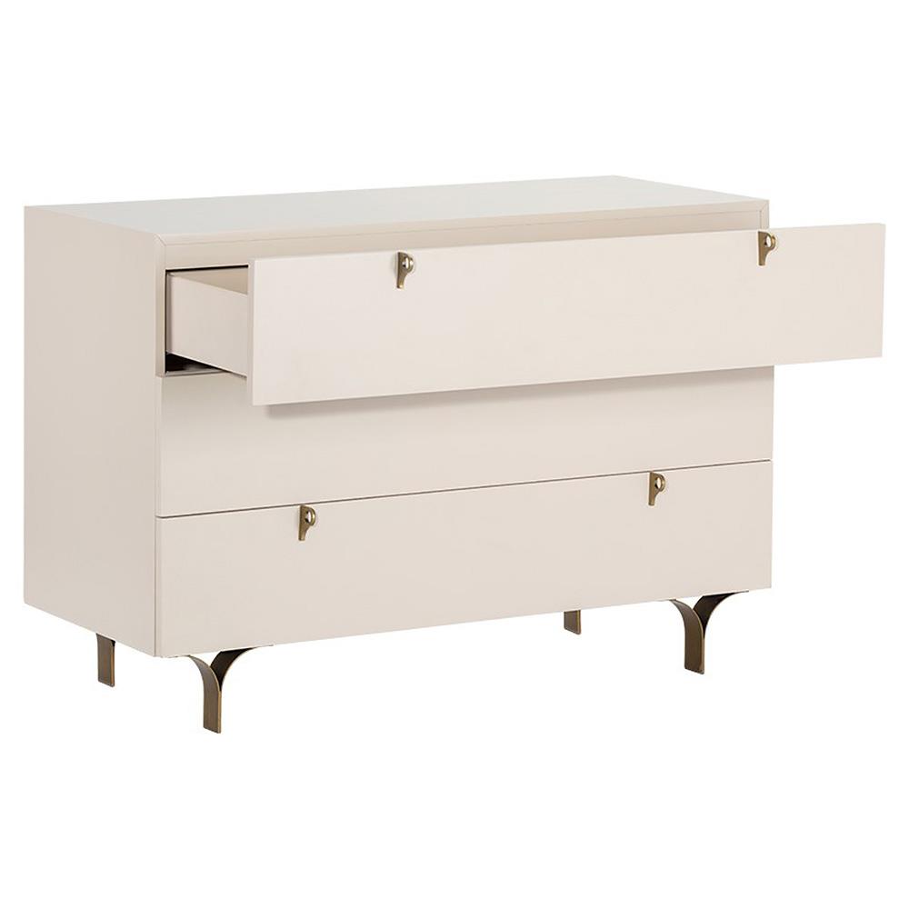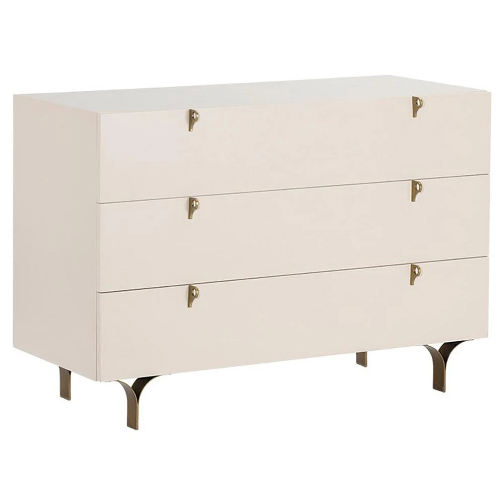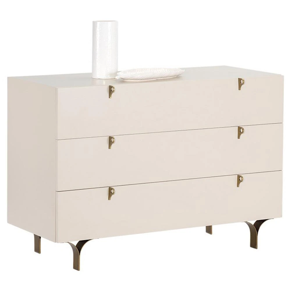 Macias French Country Cream Rubberwood Antique Brass Base 3 Drawer Dresser