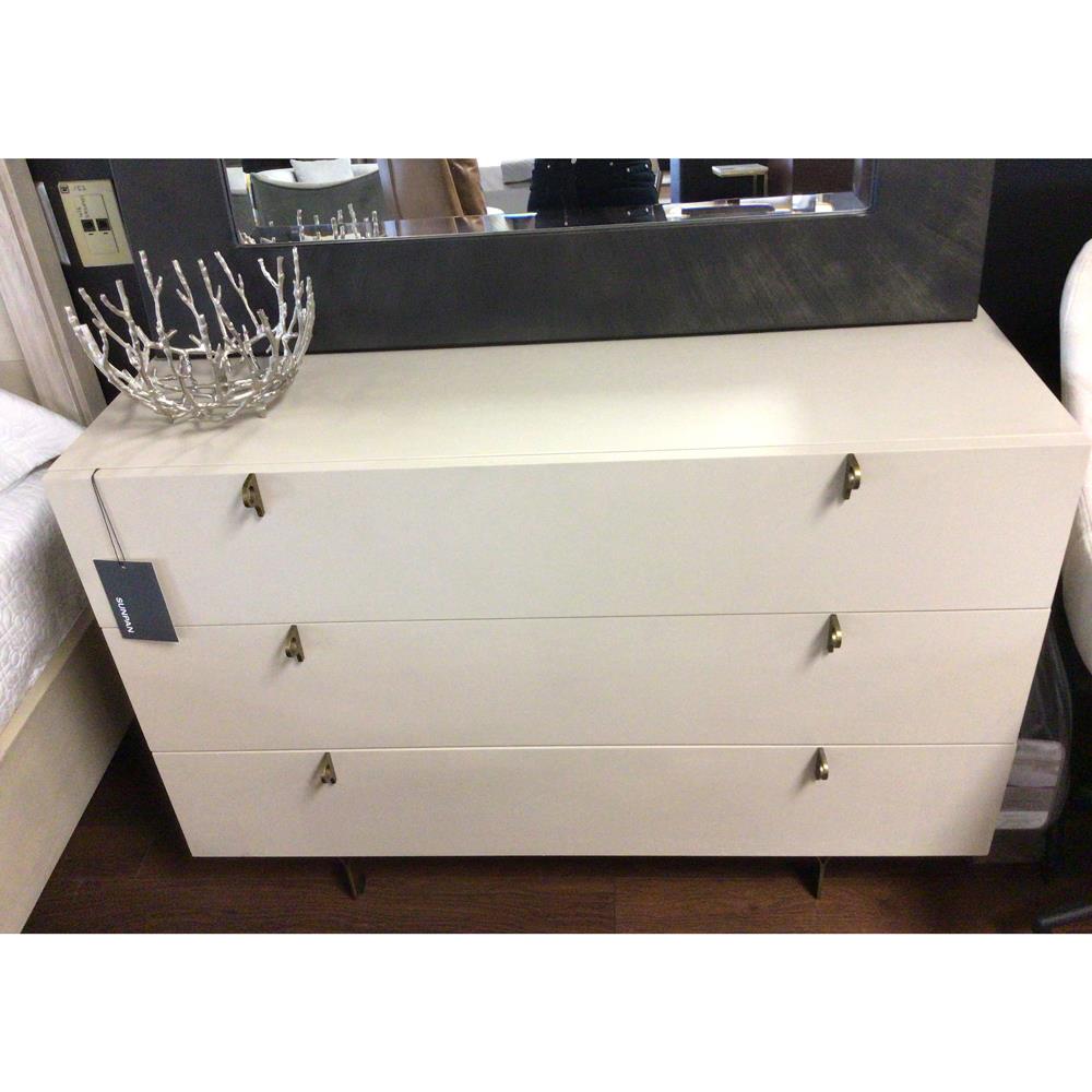 • Ejiro Modern Classic Off White Mahogany Brown Oak Chest|Kathy Kuo Home