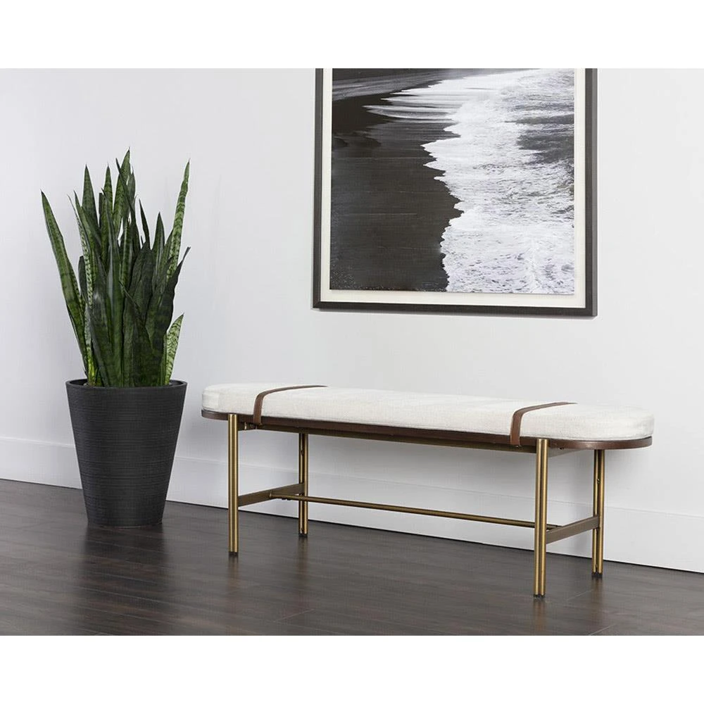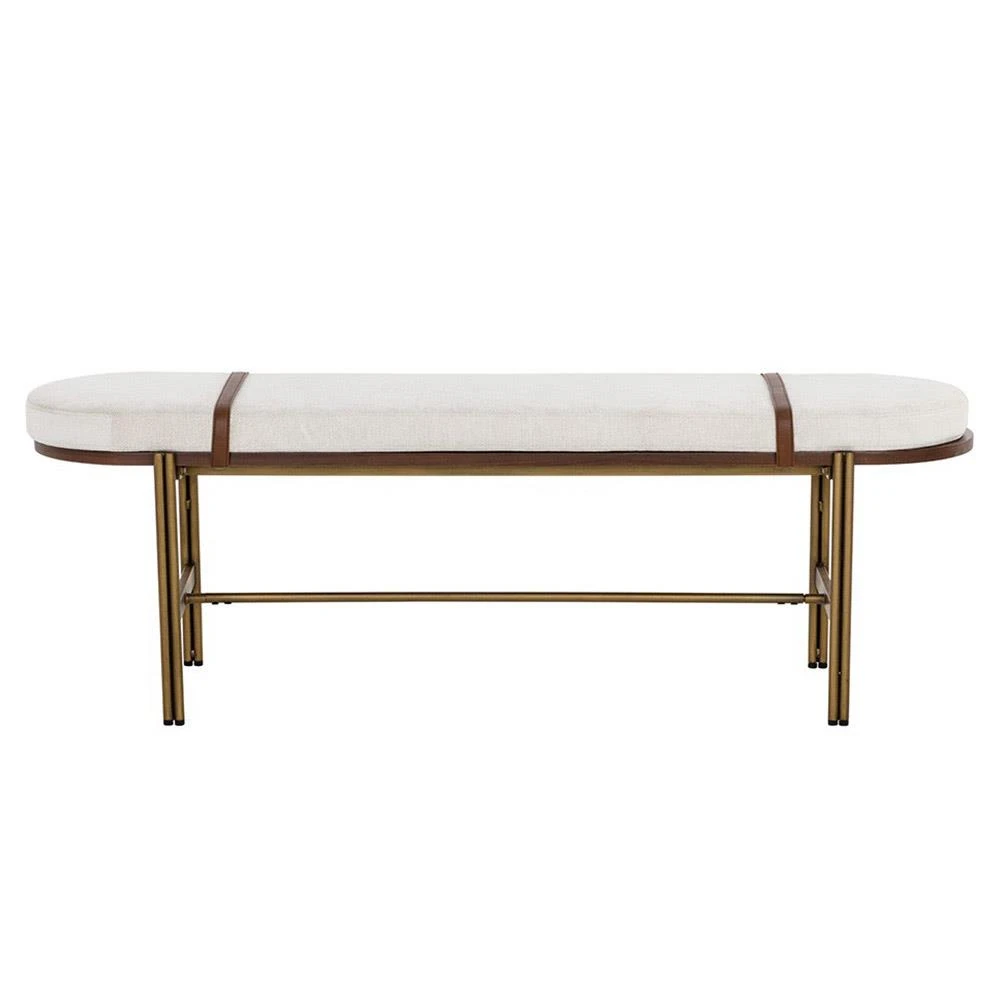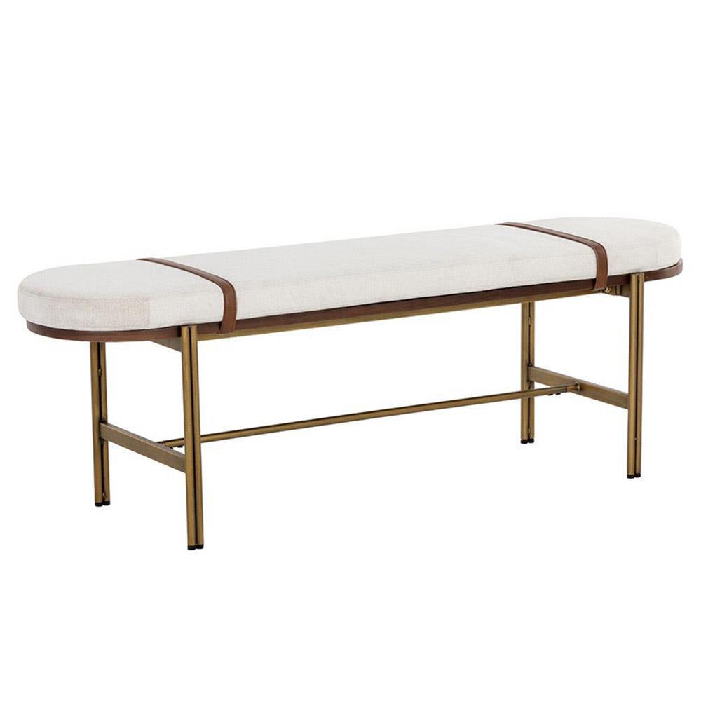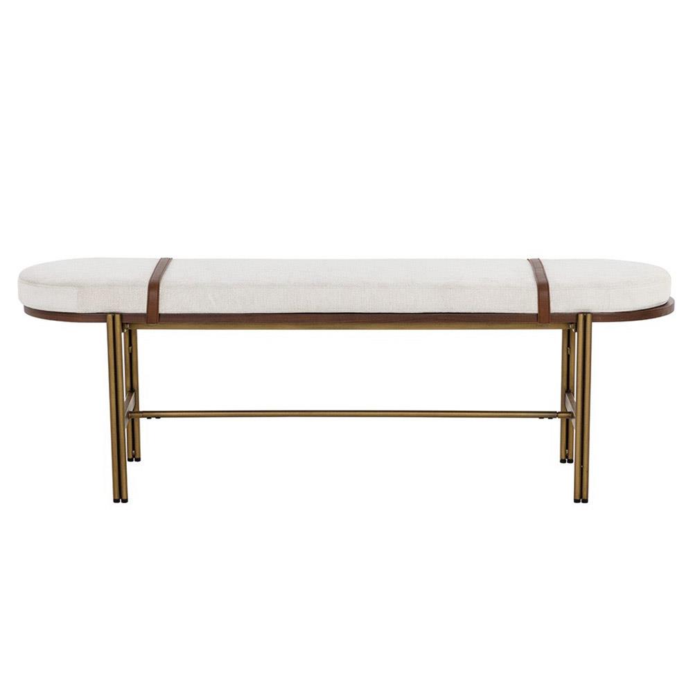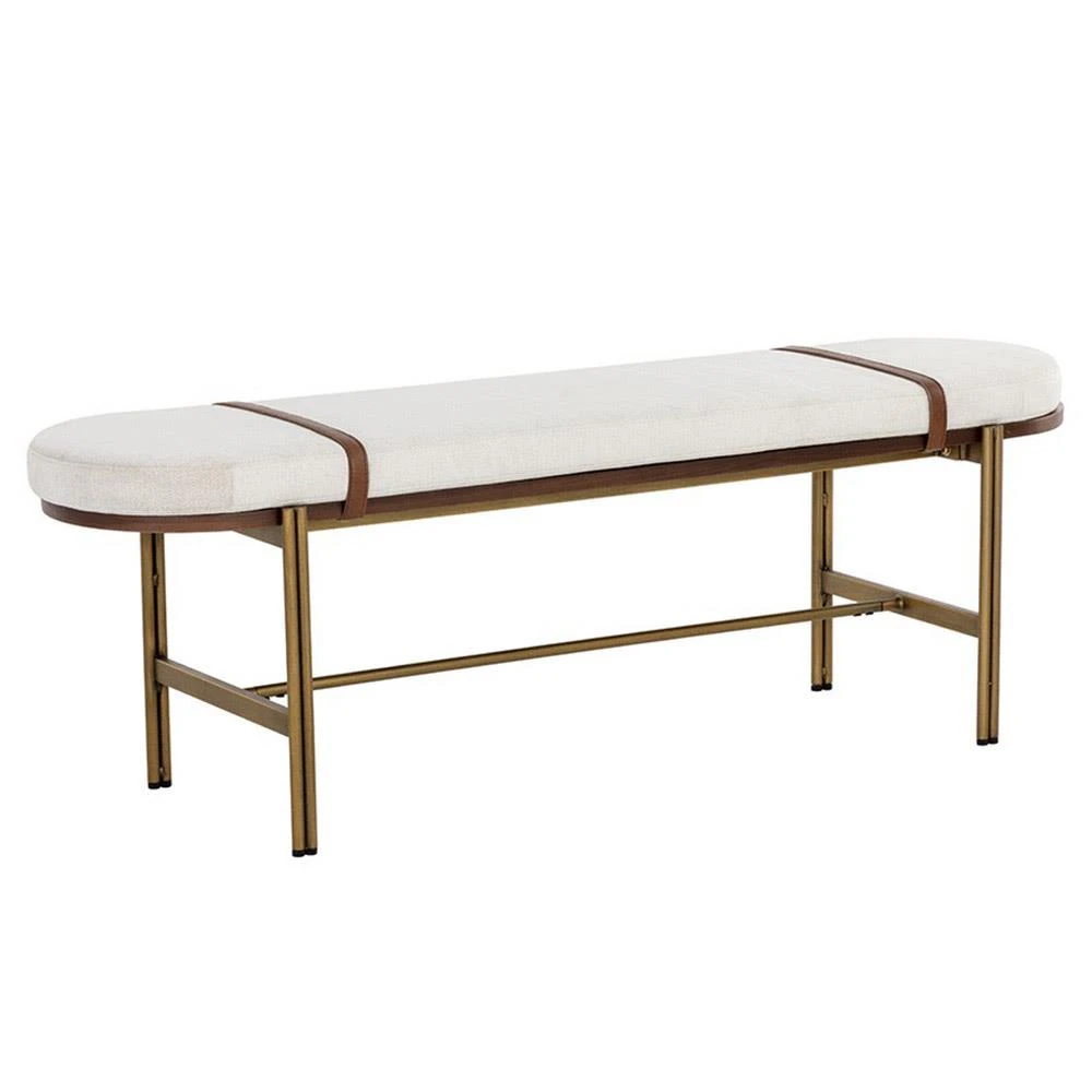 Usman Mid Century Beige Performance Antique Brass Steel Entryway Bench