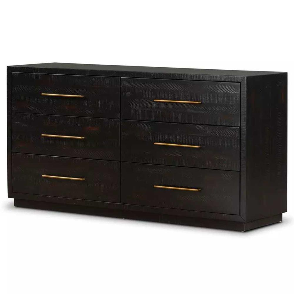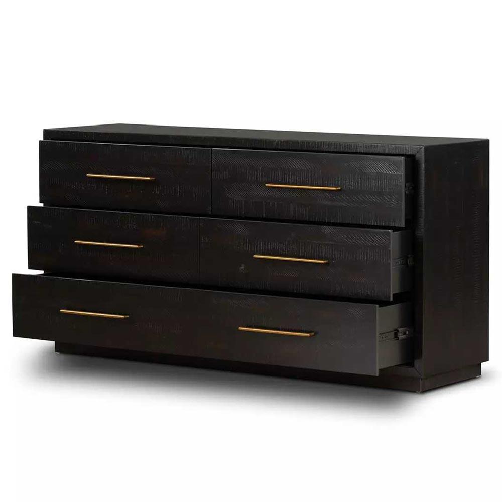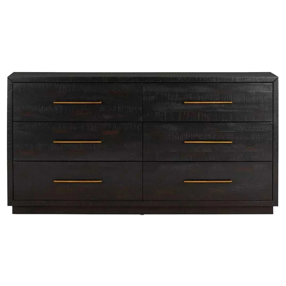 Dorwin Industrial Loft Espresso Brown Acacia Wood 6 Drawer Dresser