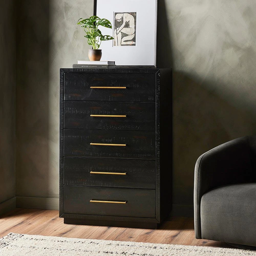 Dorwin Industrial Loft Espresso Brown Wood 5 Drawer Dresser