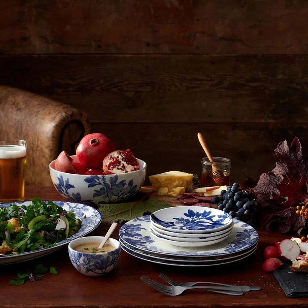 Juliska Villa Seville French Chambray Floral Ceramic Scalloped Cocktail Plate