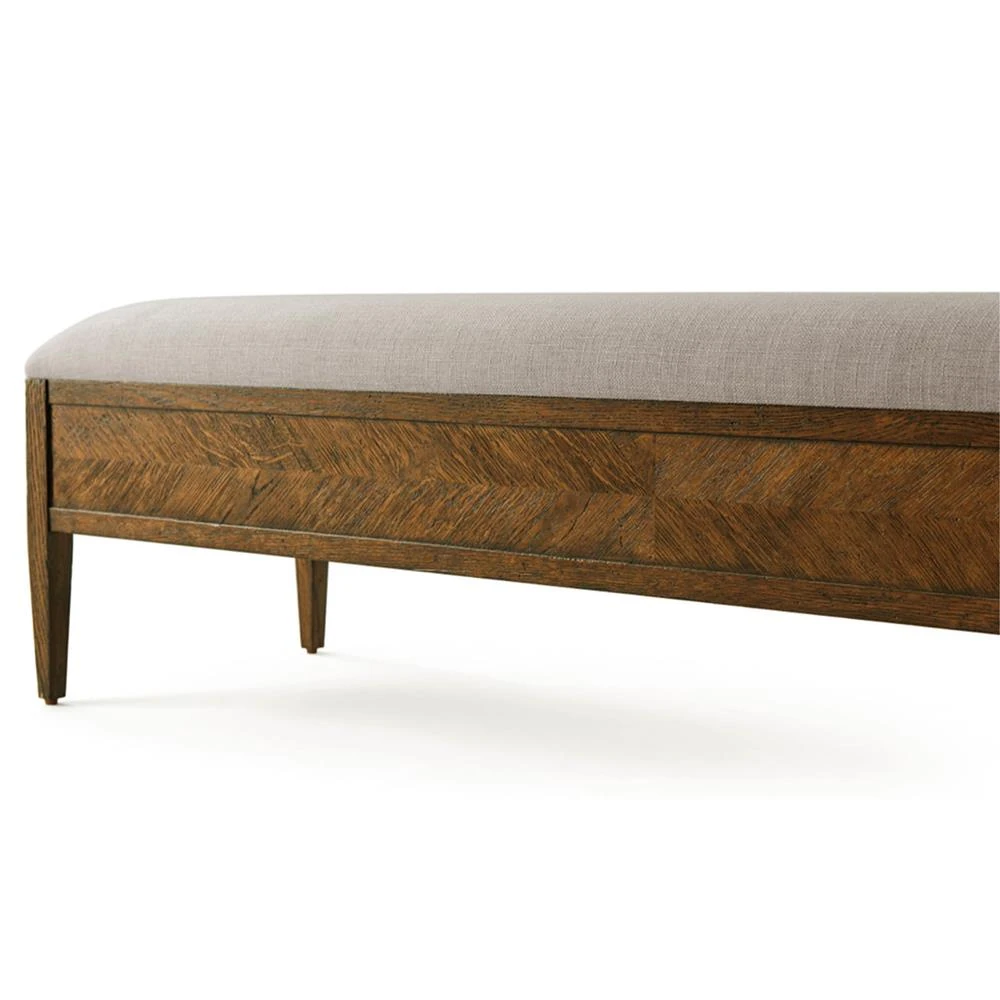 Ayra Grey Upholstered Dusk Brown Herringbone Oak Wood Bench