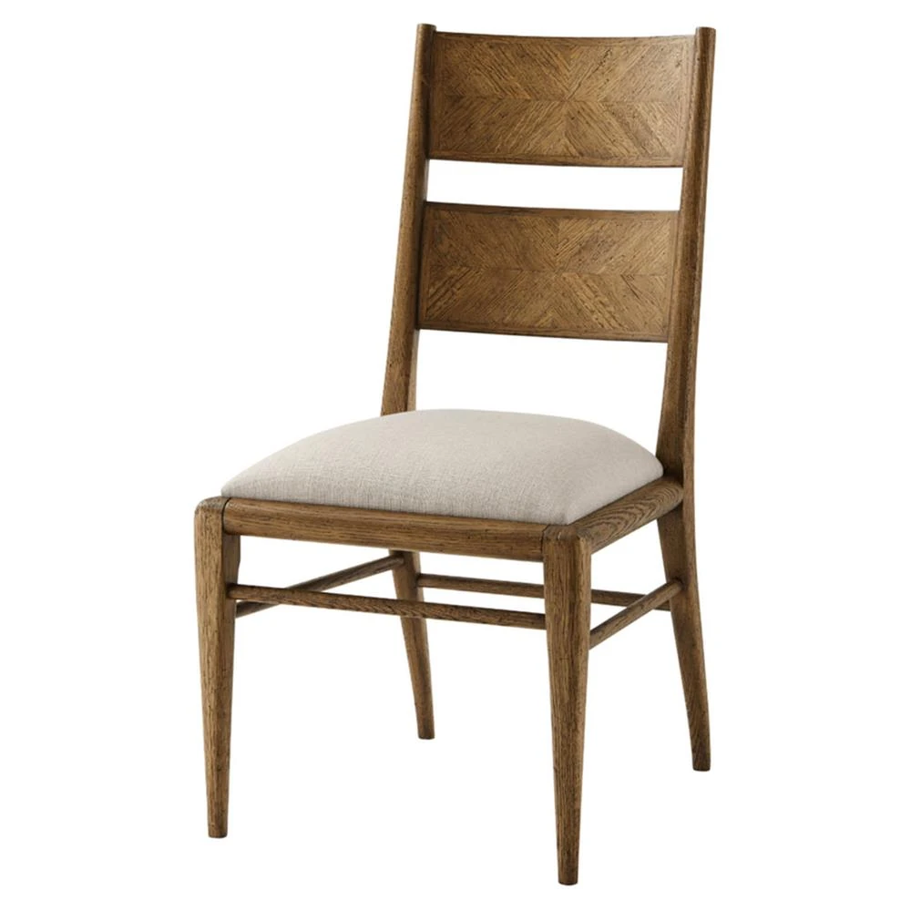 • Features a classic veneered dining chair with hand-carved oak and parquetry design