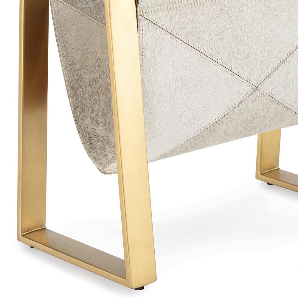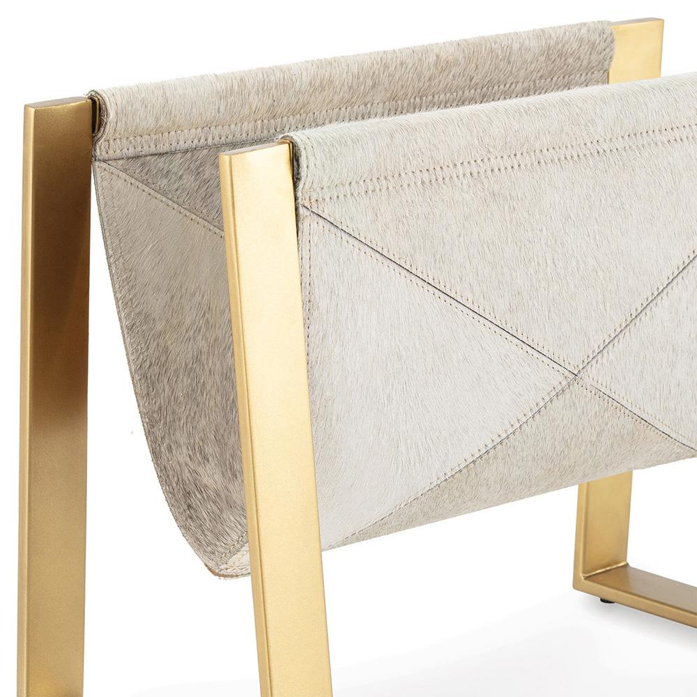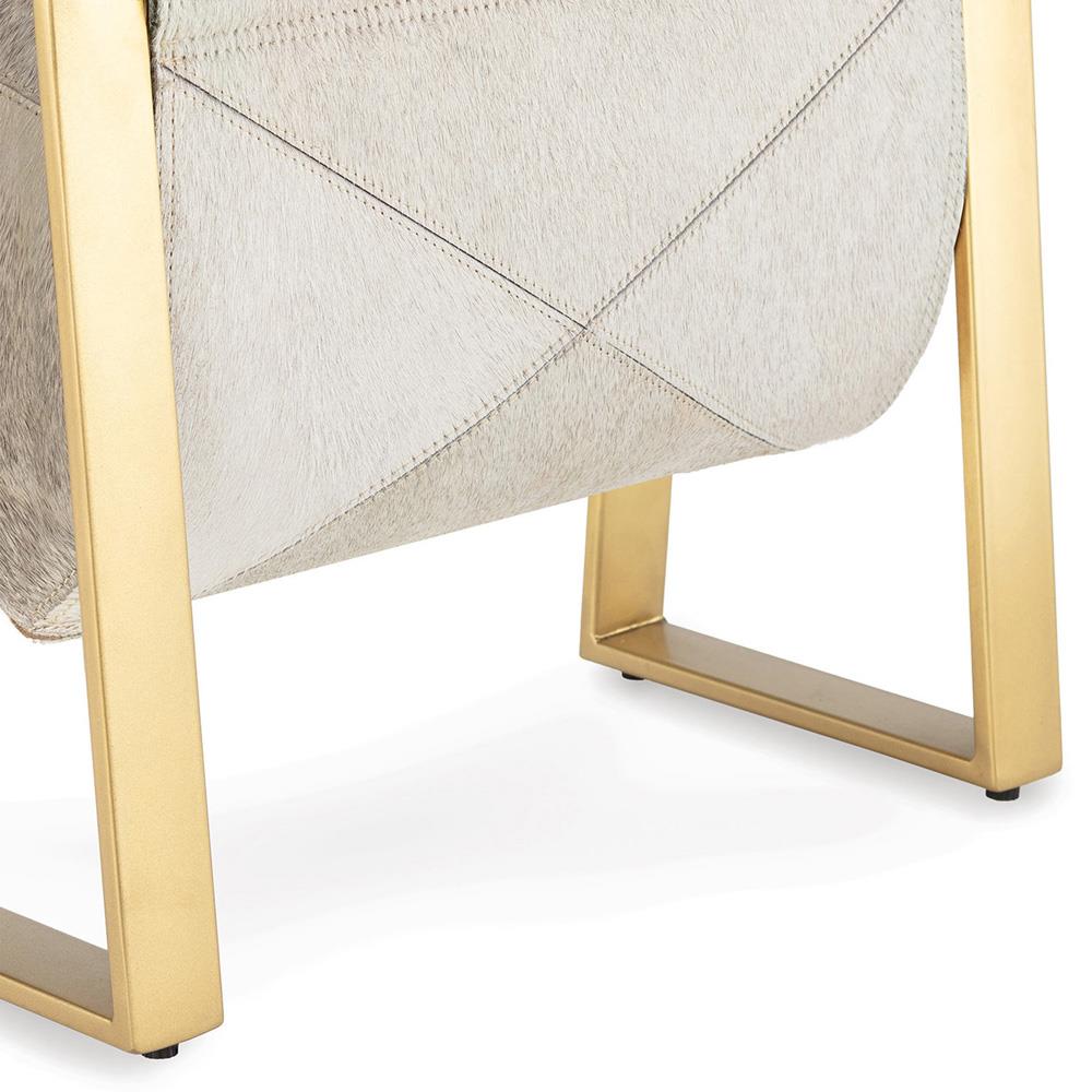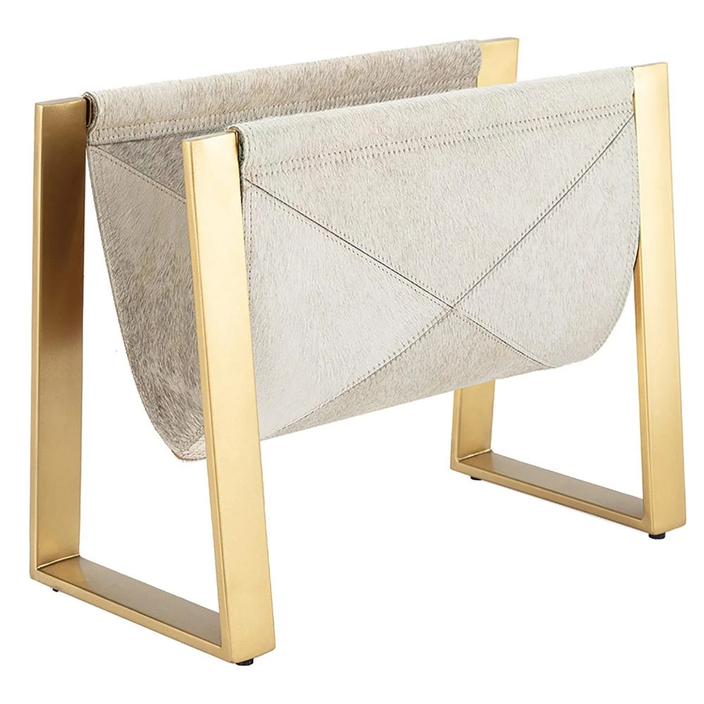 • Andres Modern Polished Nickel Steel Grey Hide Magazine Rack|Kathy Kuo Home