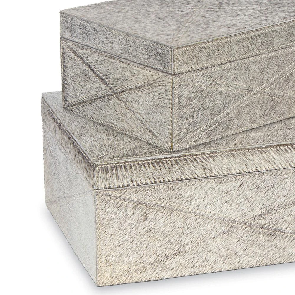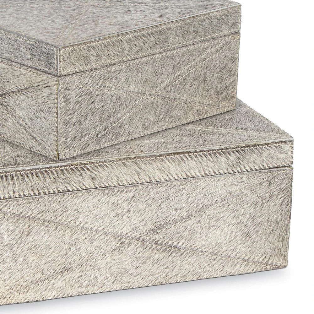 Andres Modern Classic Grey Hide Decorative Box - Set of 2