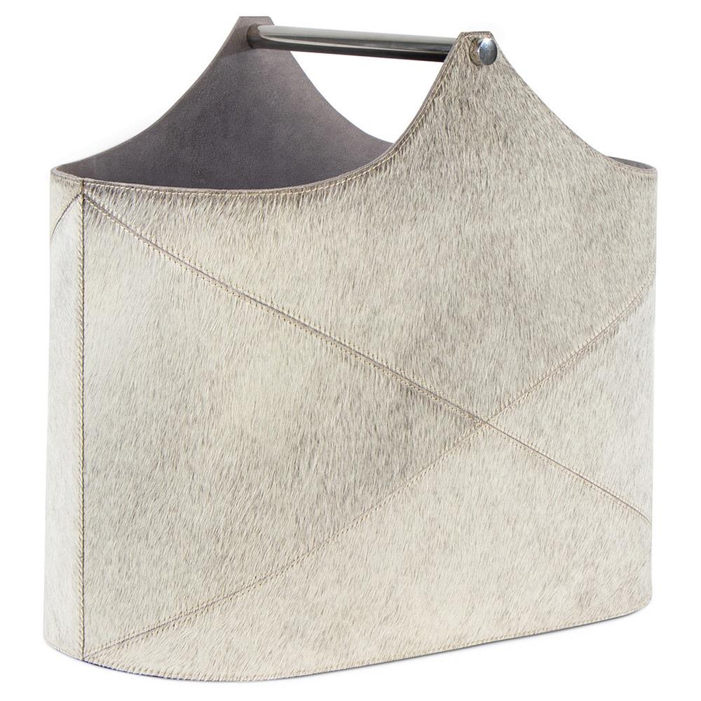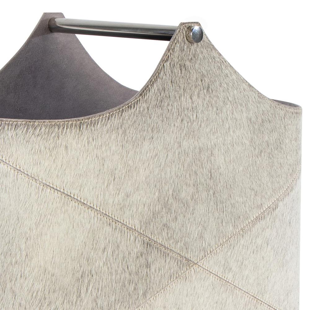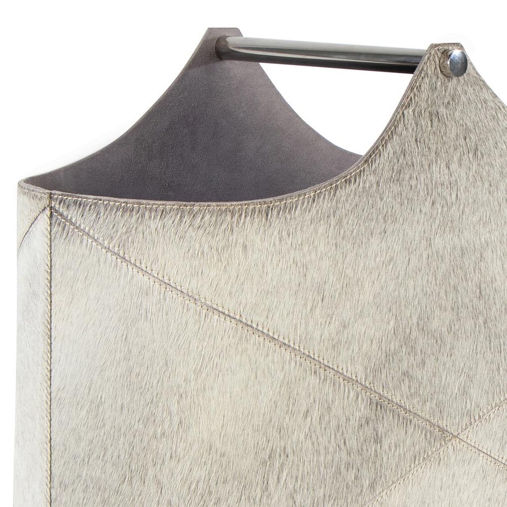 Andres Modern Polished Nickel Steel Grey Hide Magazine Rack