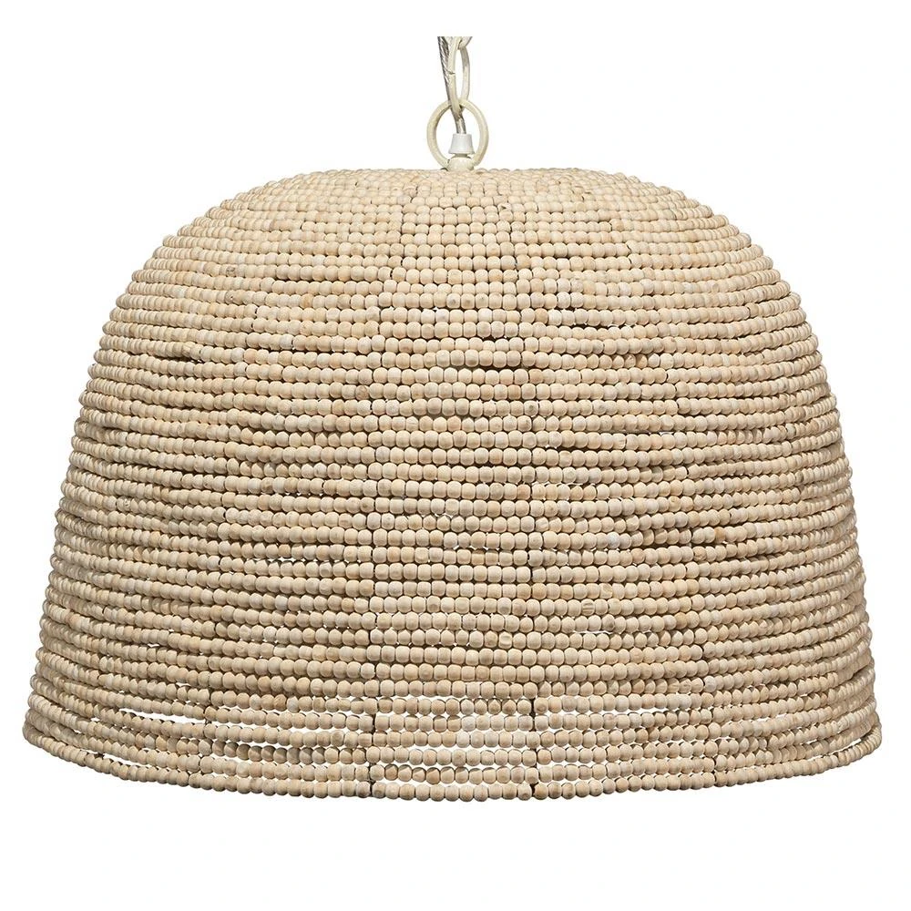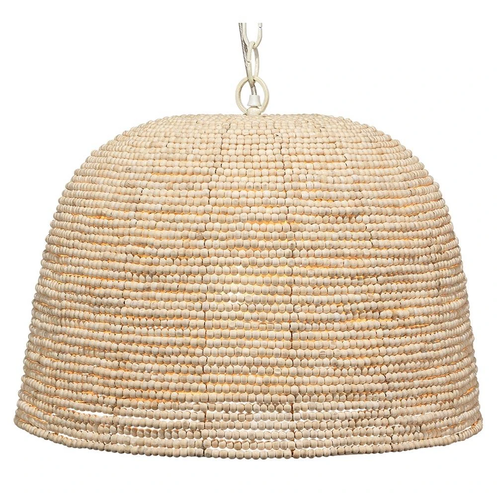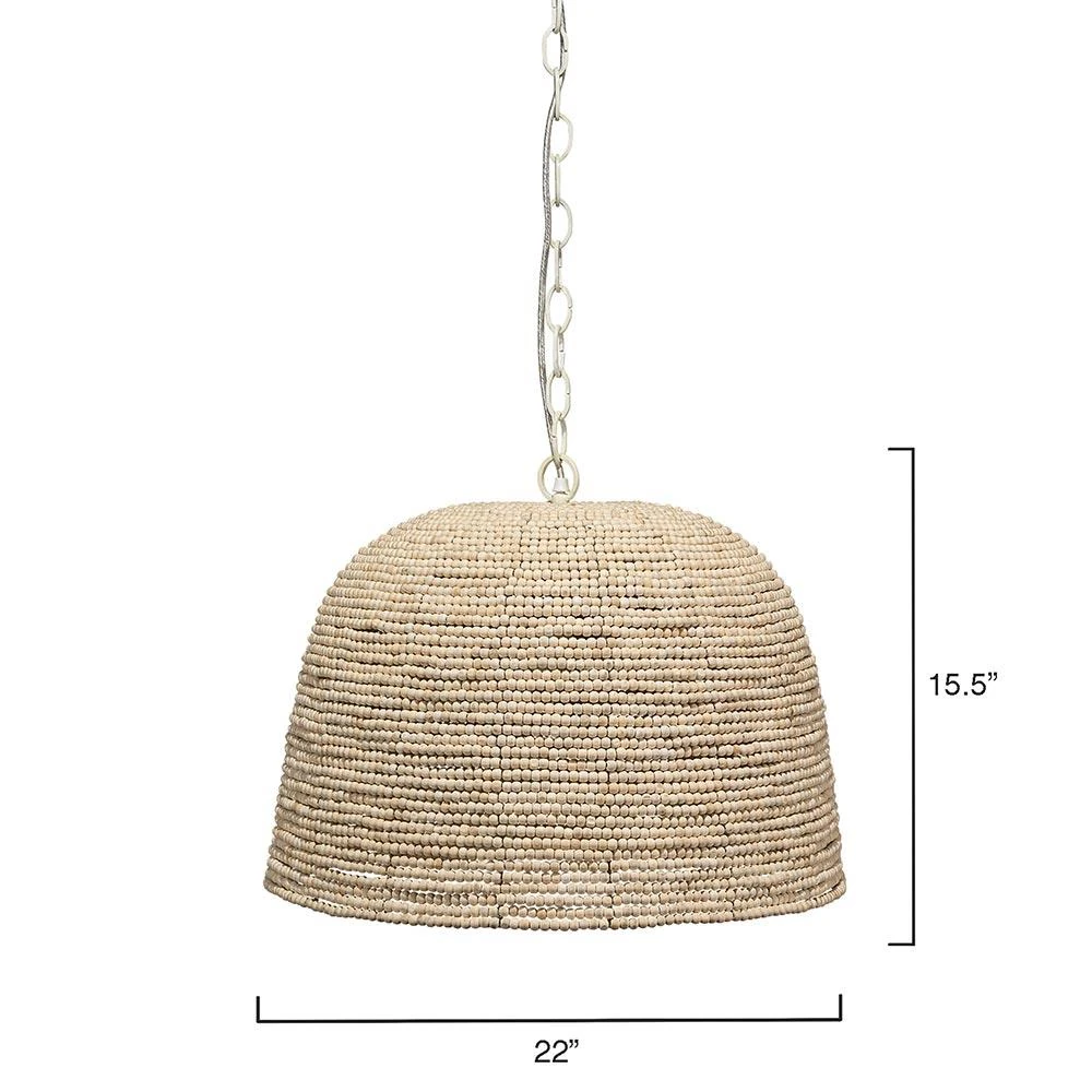Kevin Coastal Beach Off White Mango Wood Beads Iron Chain Single Pendant