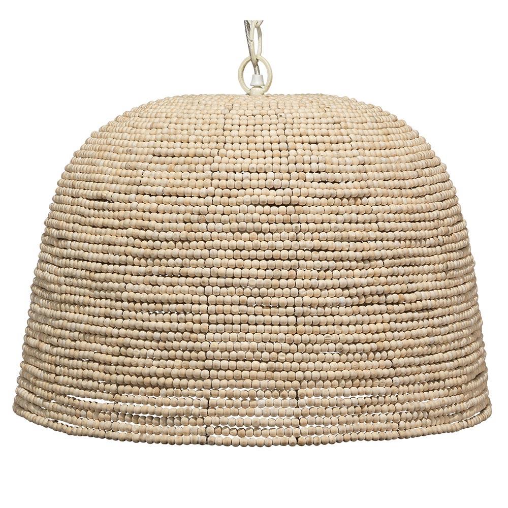 • Kevin Coastal Beach Off White Mango Wood Beads Iron Chain Single Pendant|Kathy Kuo Home