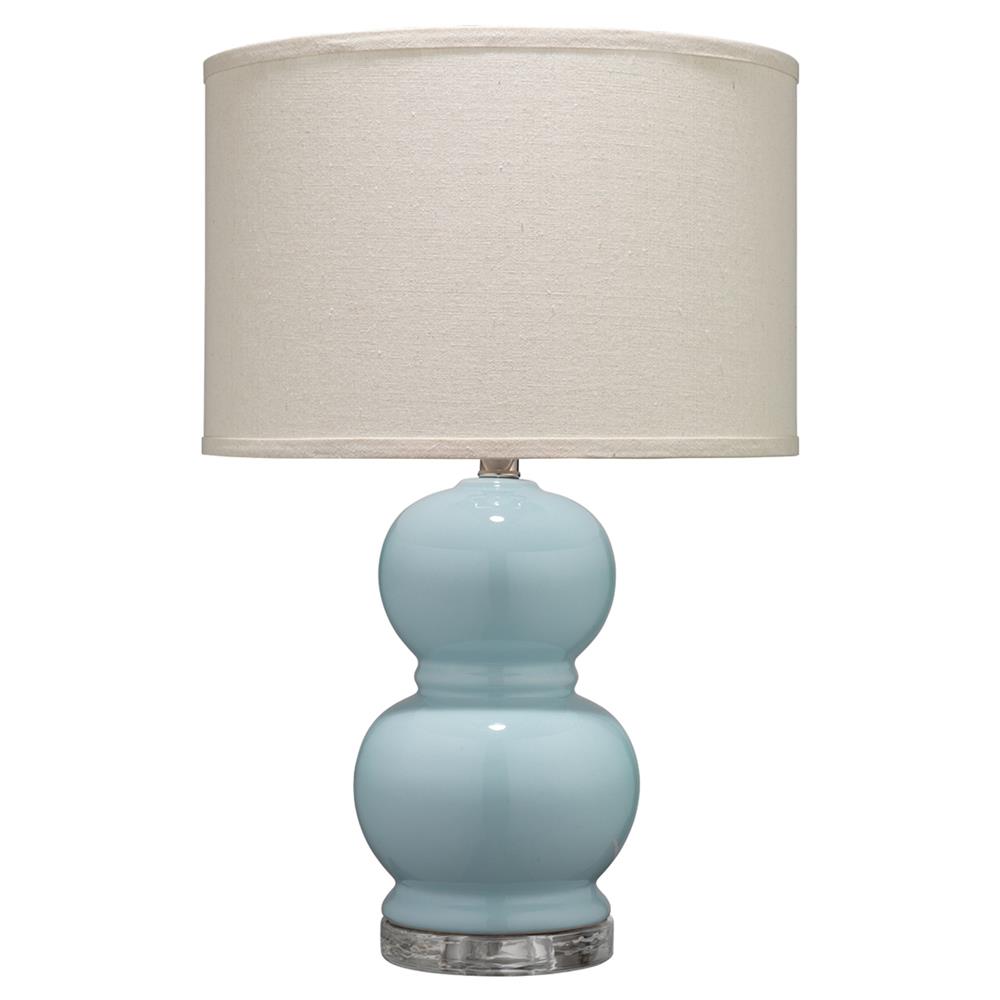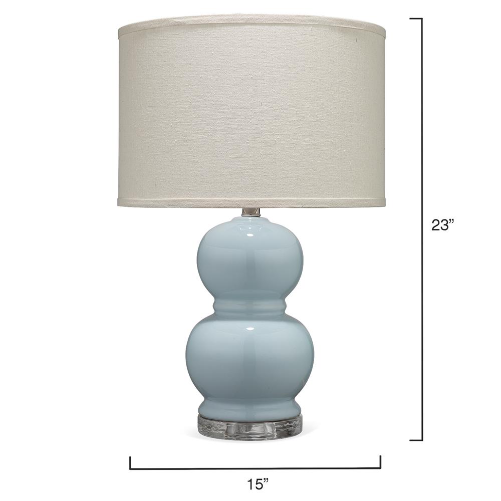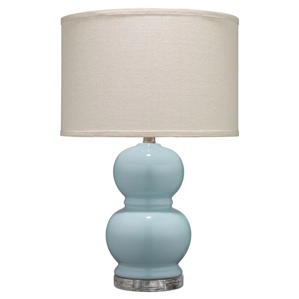 The classic Dwayne table lamp makes an easy complement to most interior design styles. With a glass base and light blue ceramic body, i ... more