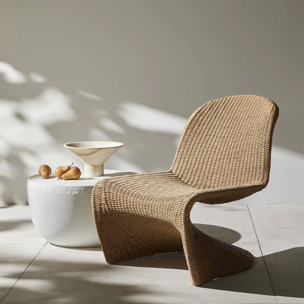 • Joel Coastal Beach Stained Brown Teak Woven Round Outdoor End Table|Kathy Kuo Home