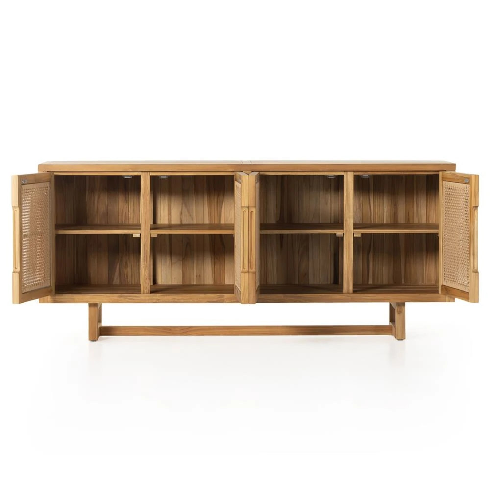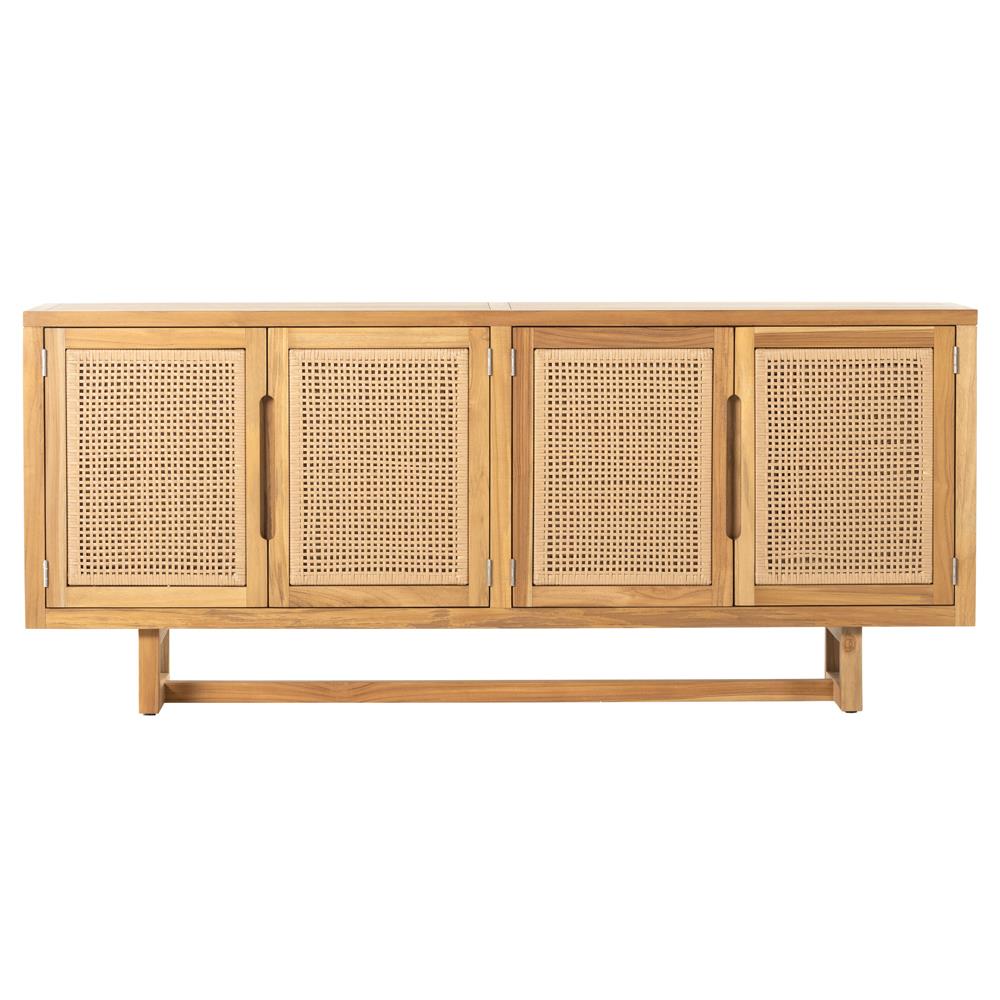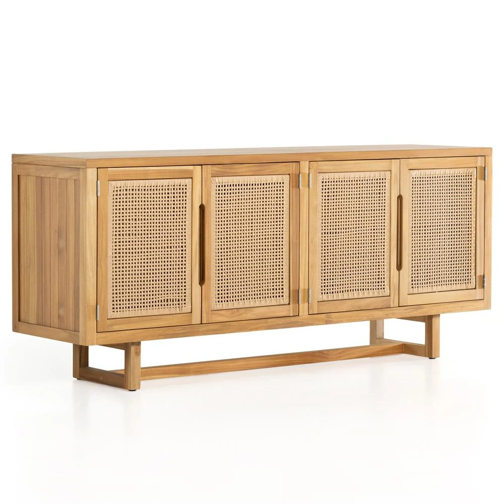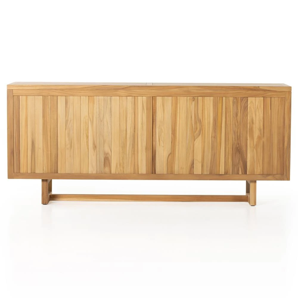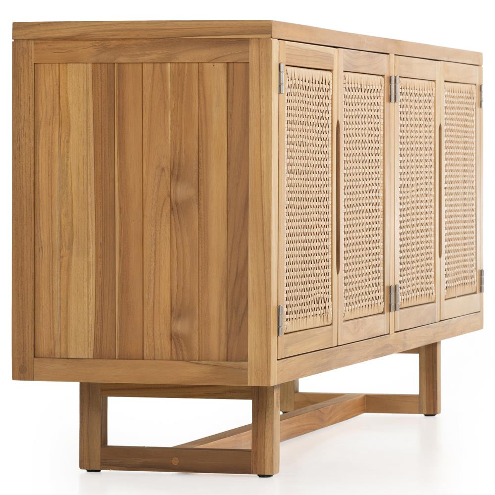 • Yulla Rustic Lodge Natural Solid Teak Wood 4 Door Outdoor Sideboard|Kathy Kuo Home