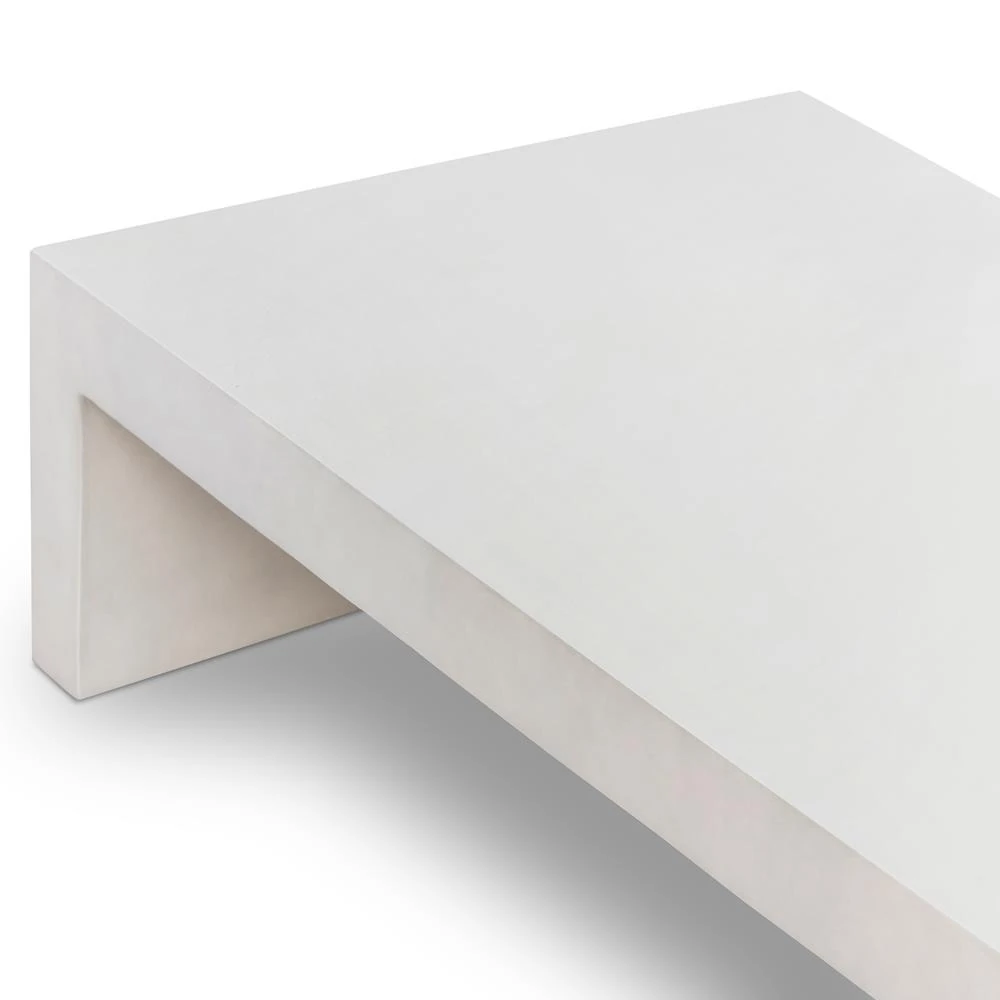 • Tricia Industrial Loft White Concrete Square Block Outdoor Coffee Table|Kathy Kuo Home