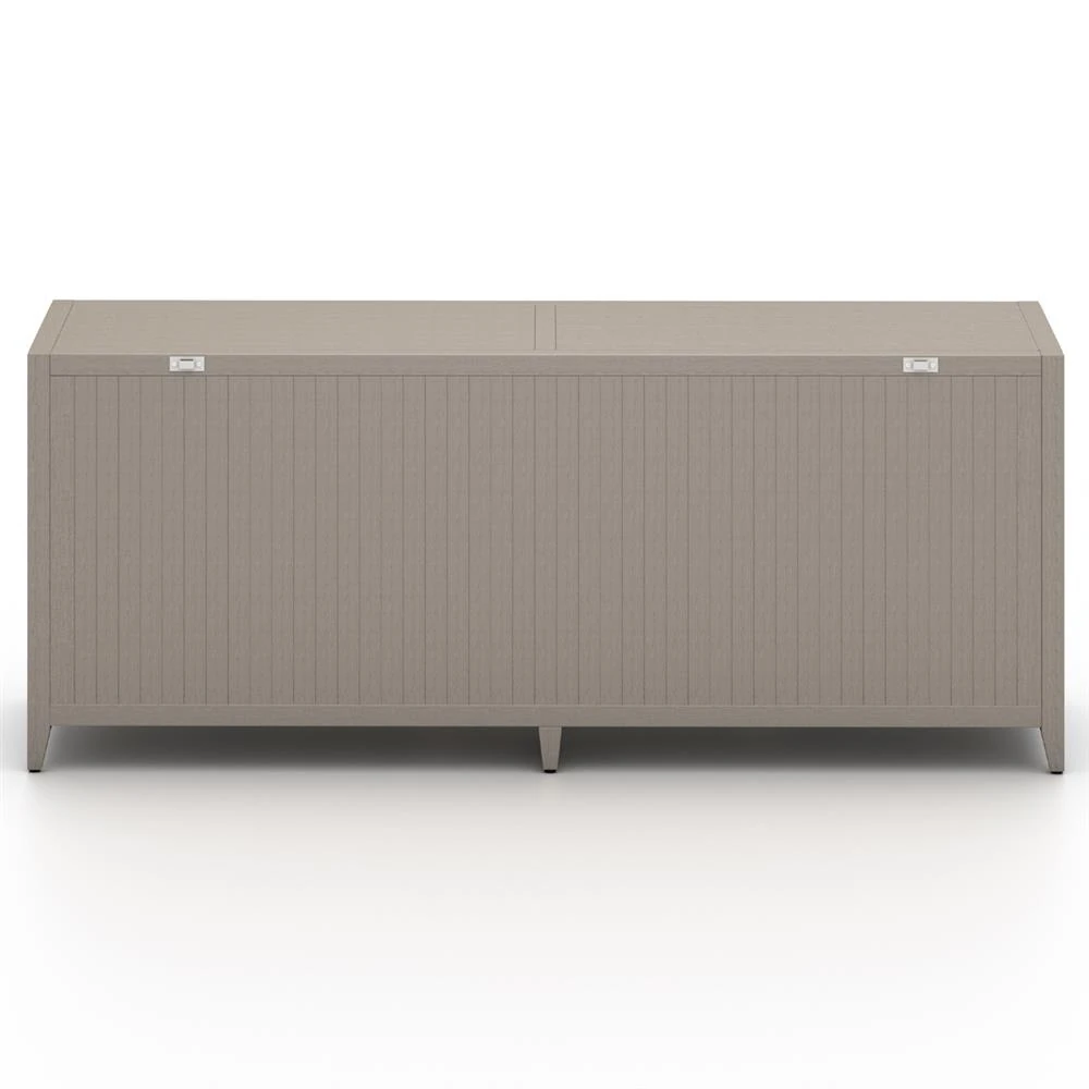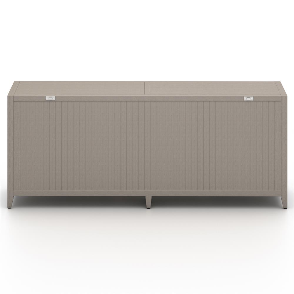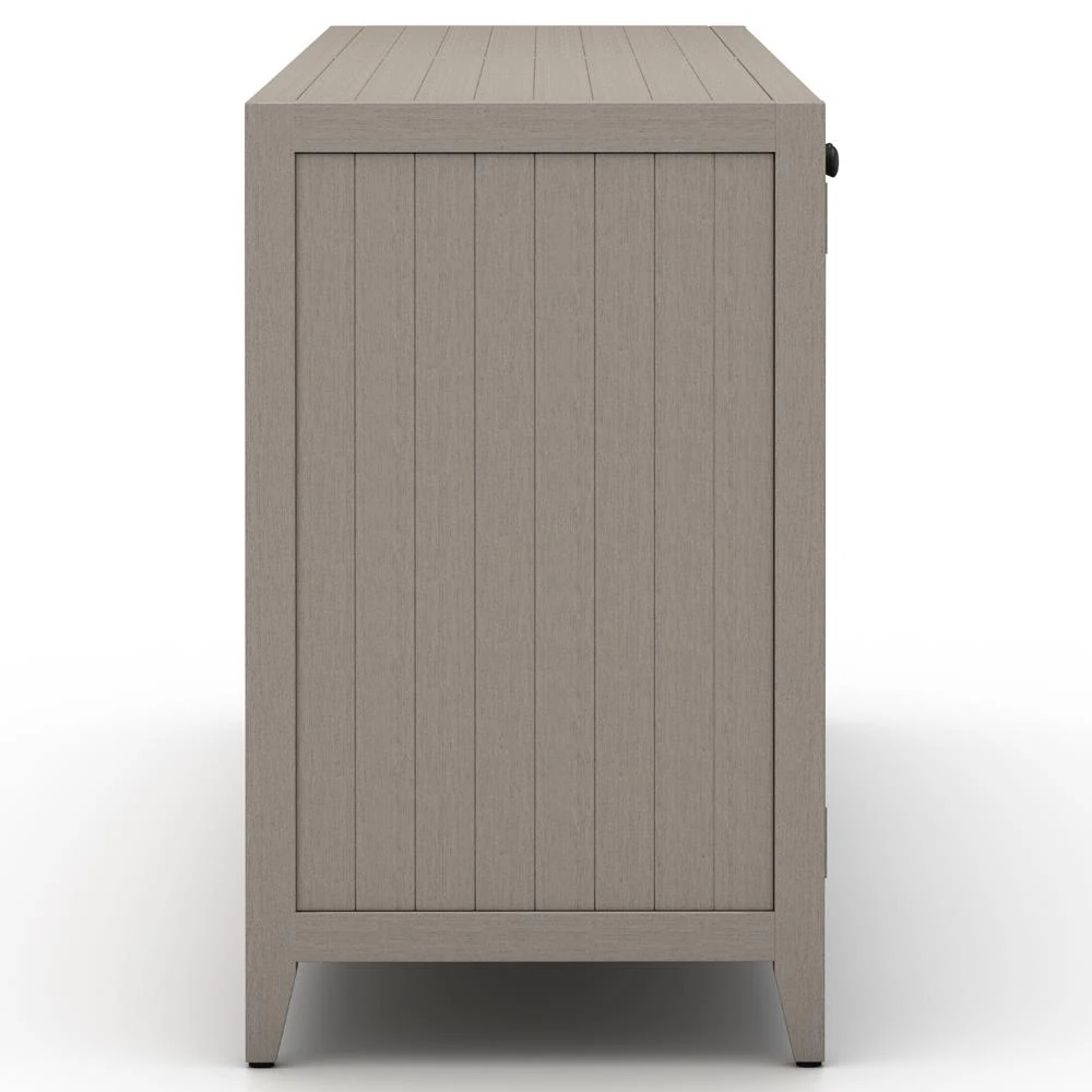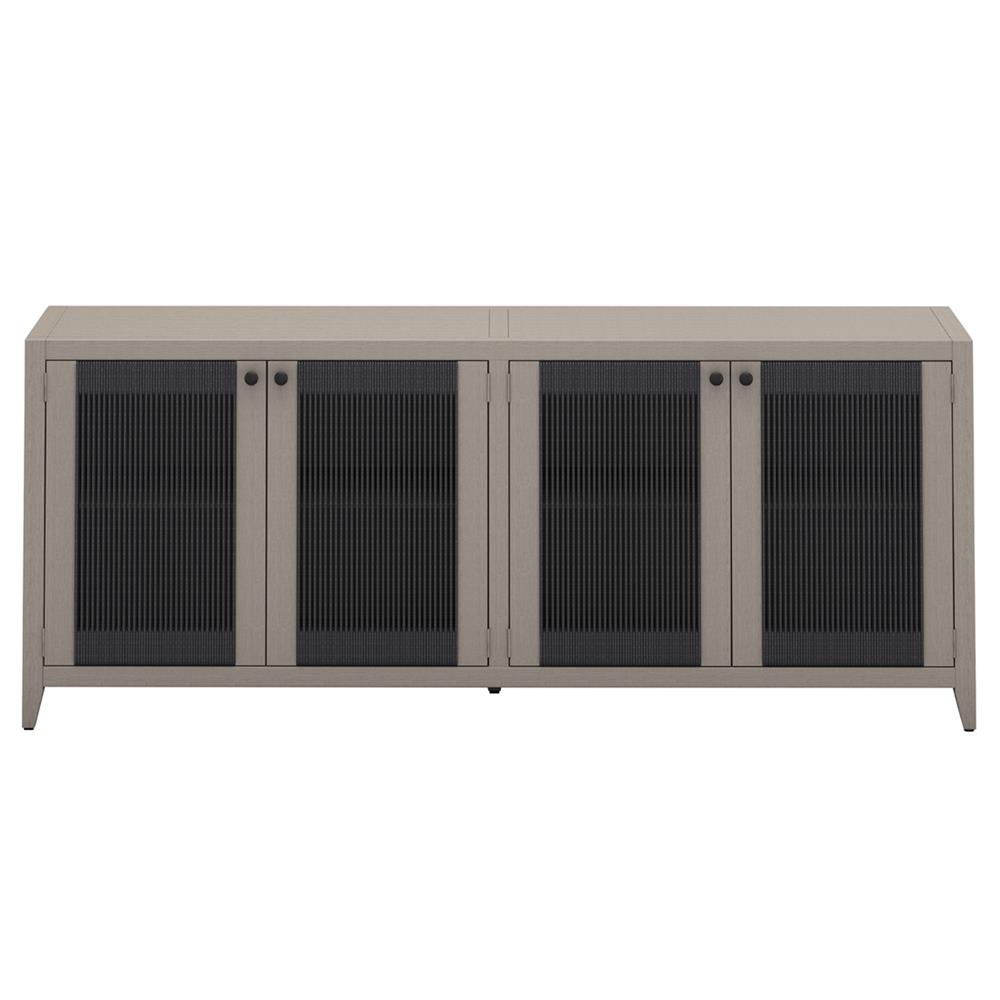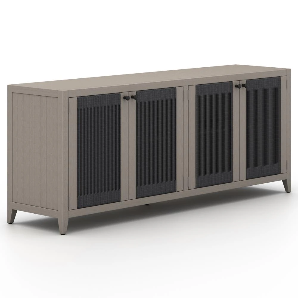 • Cheryl Rustic Lodge Natural Teak Wood Grey Rope Accent Outdoor 4 Door Sideboard|Kathy Kuo Home