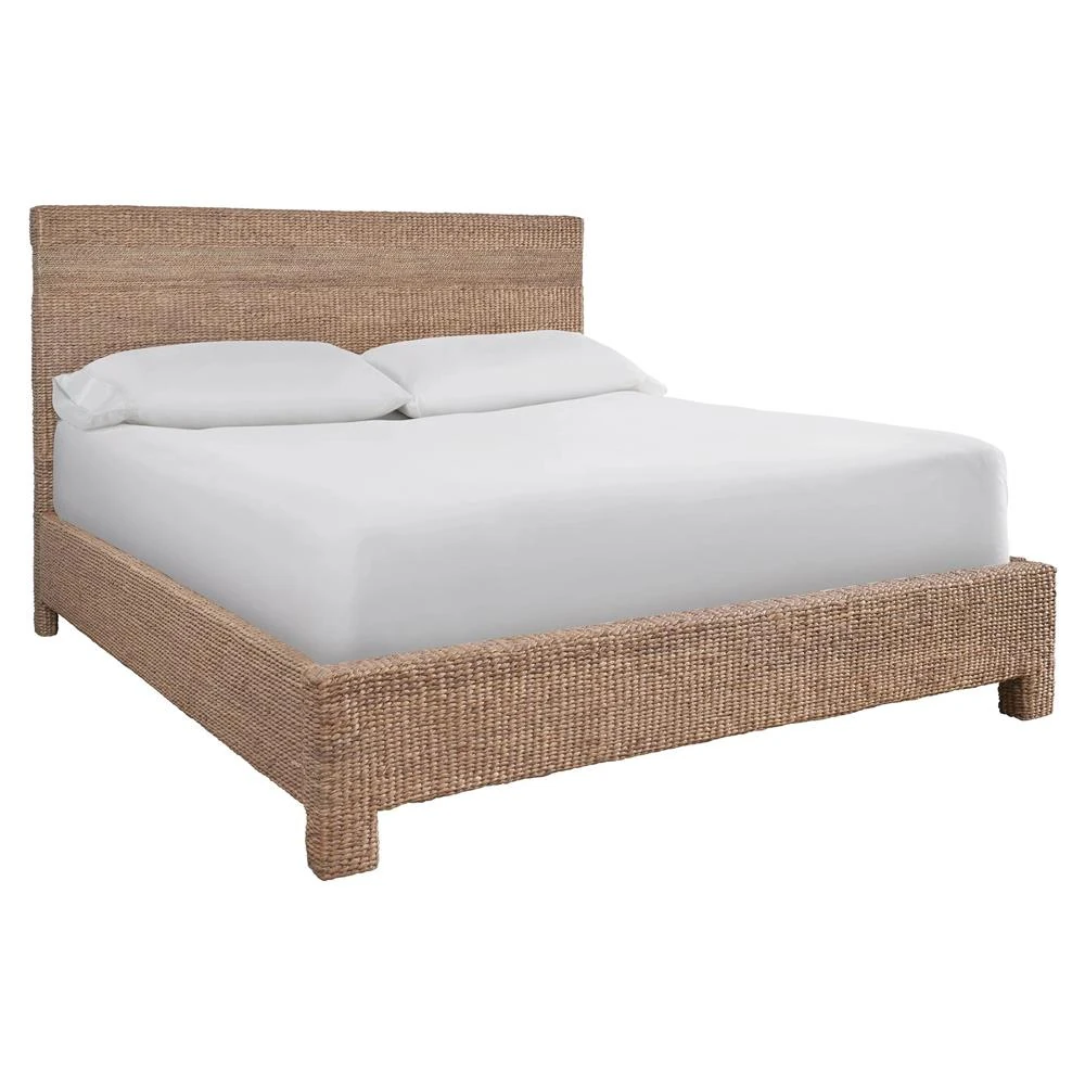 Allard Coastal Beach Brown Wood Natural Woven Rattan Bed - King