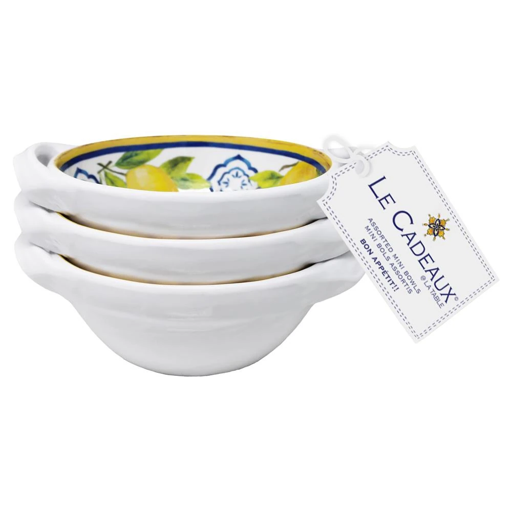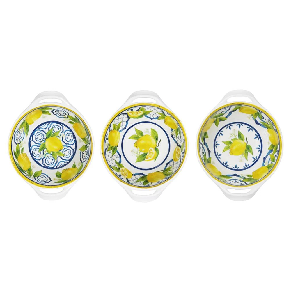Palermo Global White Melamine Lemon Print Mini Handled Bowl - Set of 3