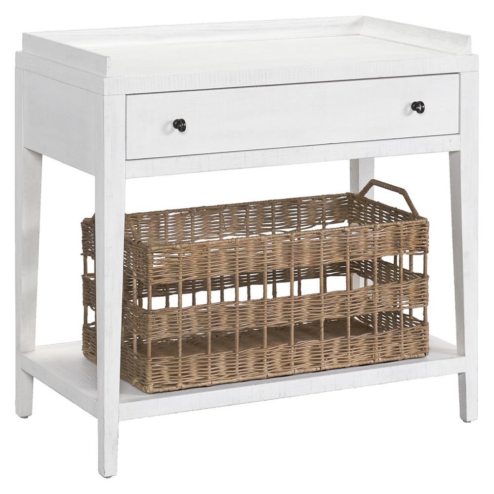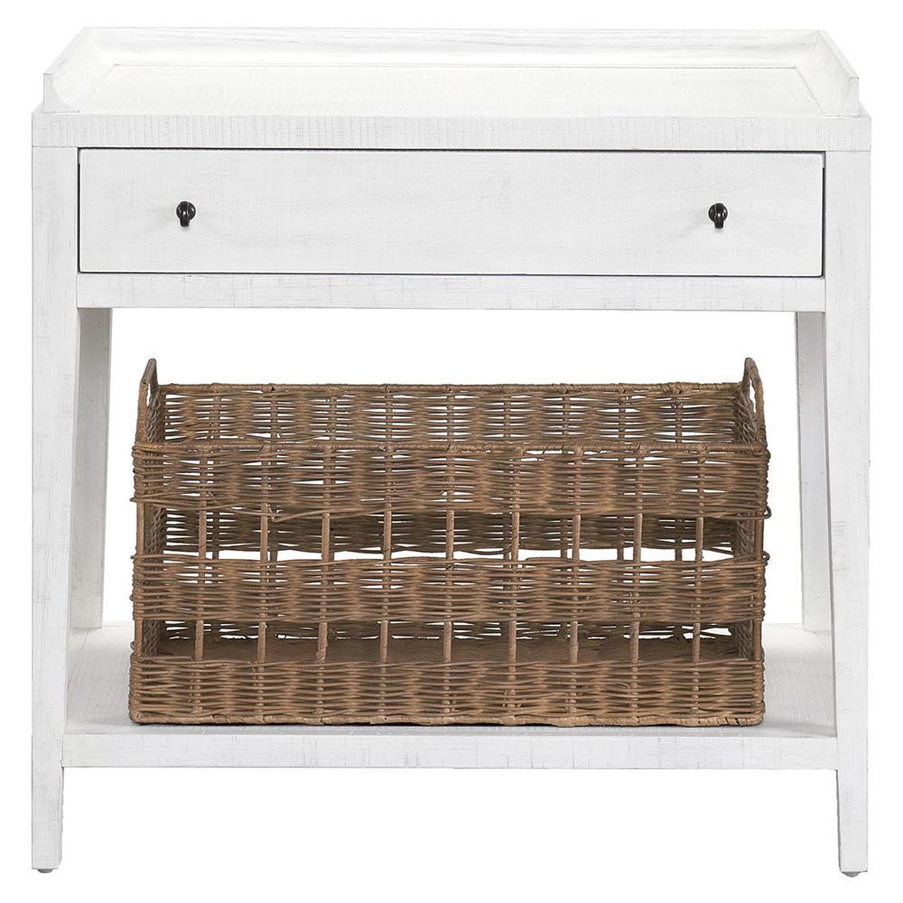 Alli Coastal Beach White Oak Wood Brown Woven Basket 1 Drawer Nightstand