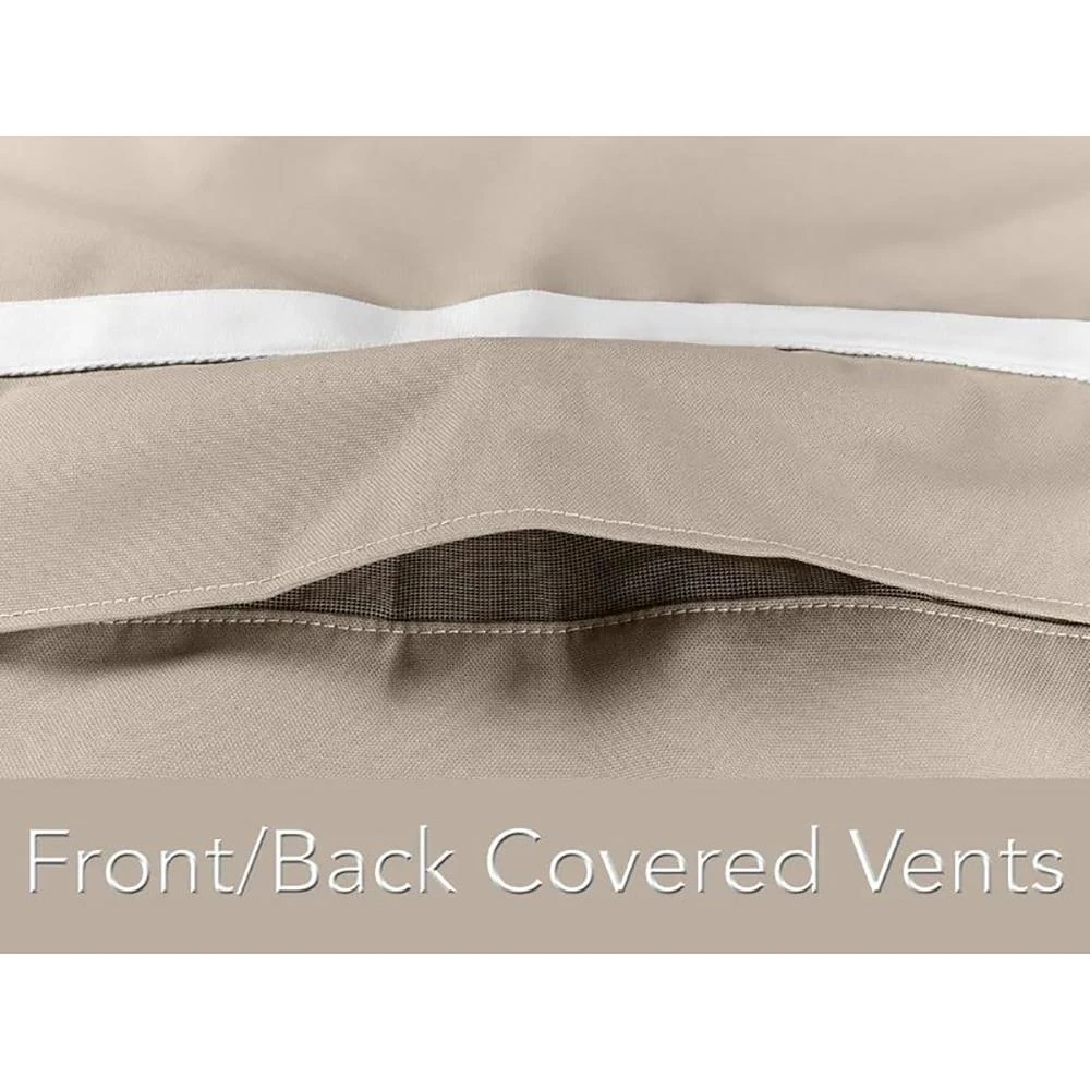 • PVC free; Eco-friendly water-resistant backing for added protection; Features 360 auto-locking drawcord cinches cover for a custom look and tight fit during high winds