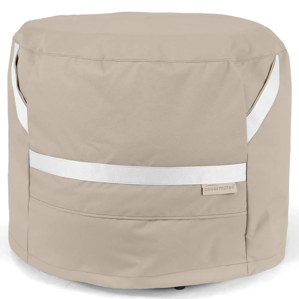 • Outdoor Side End Table Beige Round Furniture Storage Cover|Kathy Kuo Home