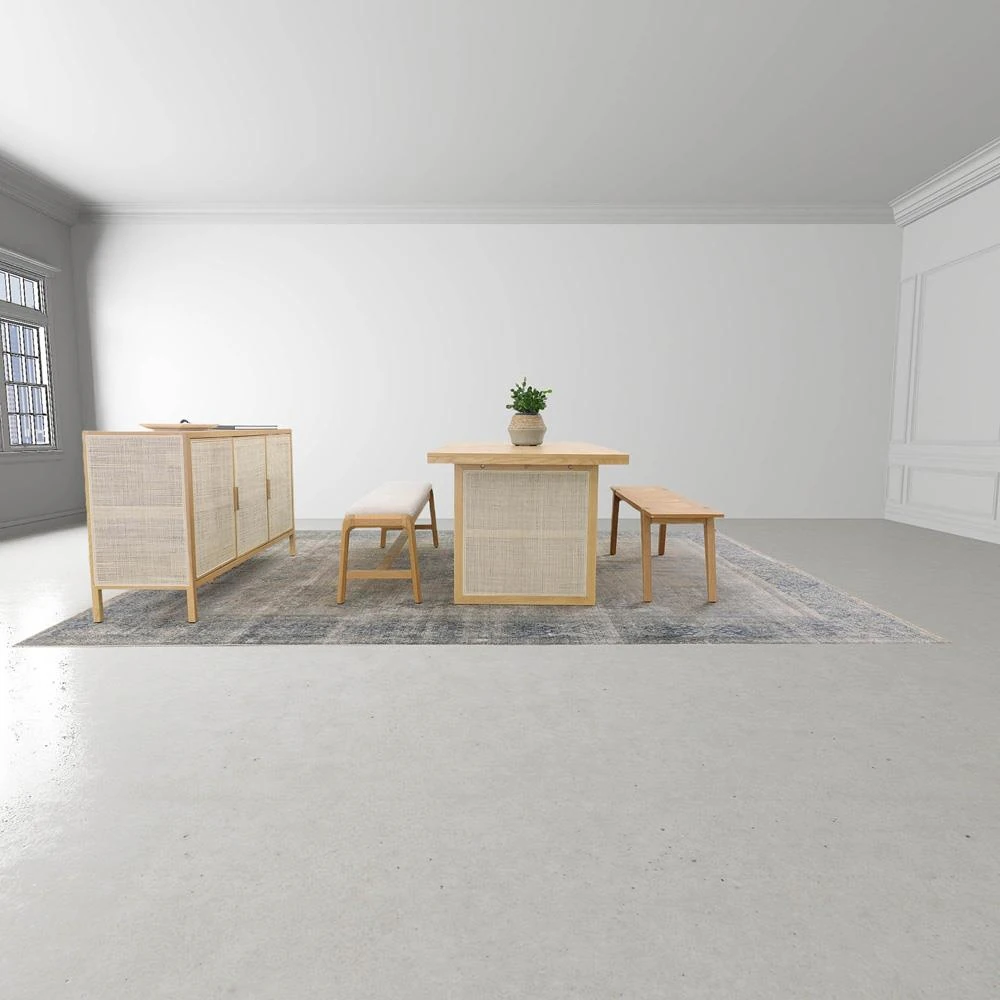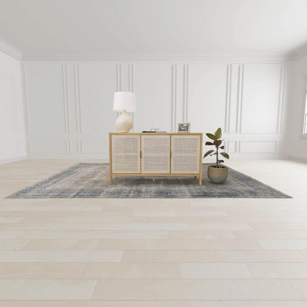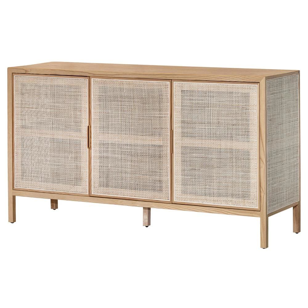 Ronaldo Coastal Beach Natural Oak Wood Woven Rattan 3 Door Sideboard
