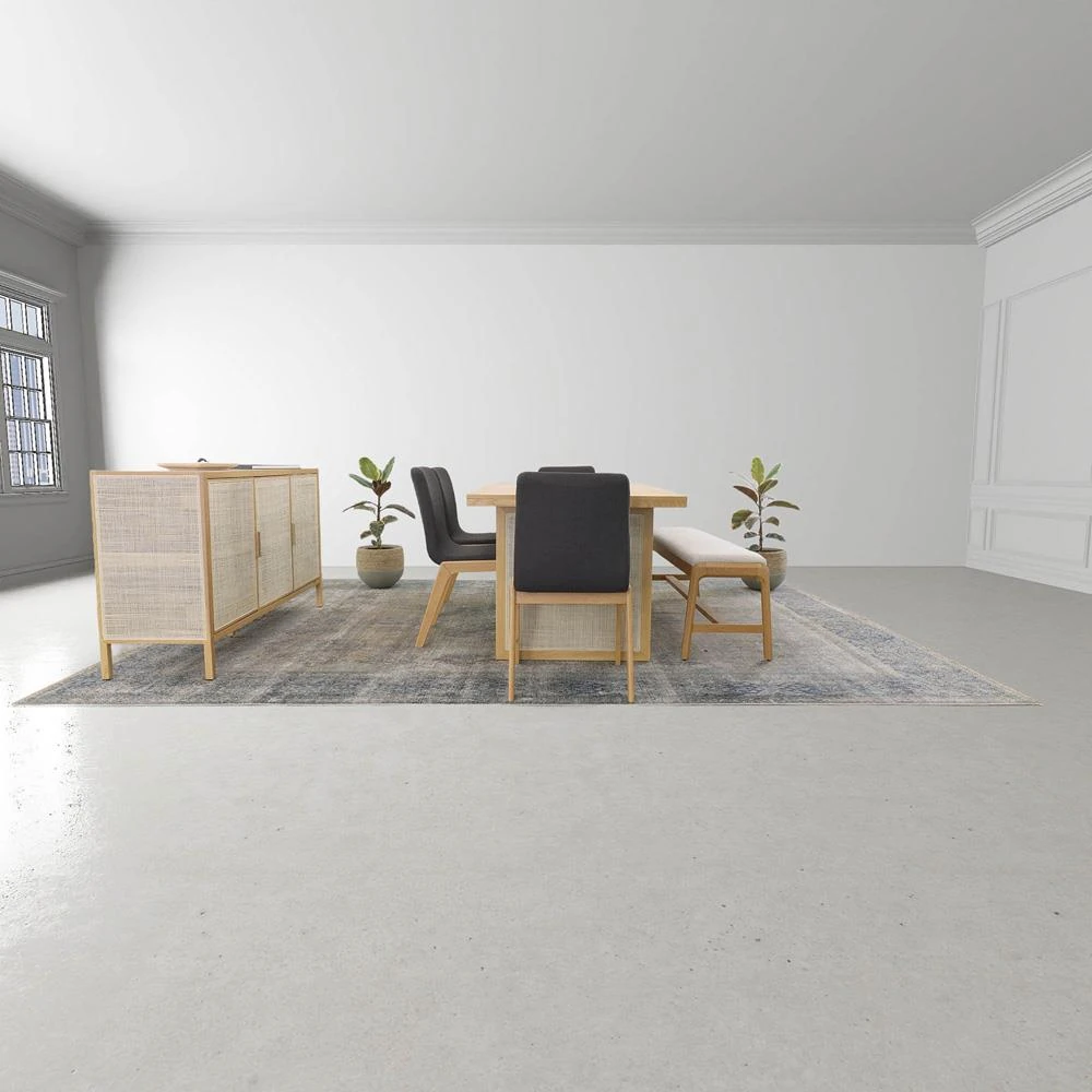 Sazana Modern Classic Blue Linen Oak Demilune Sideboard