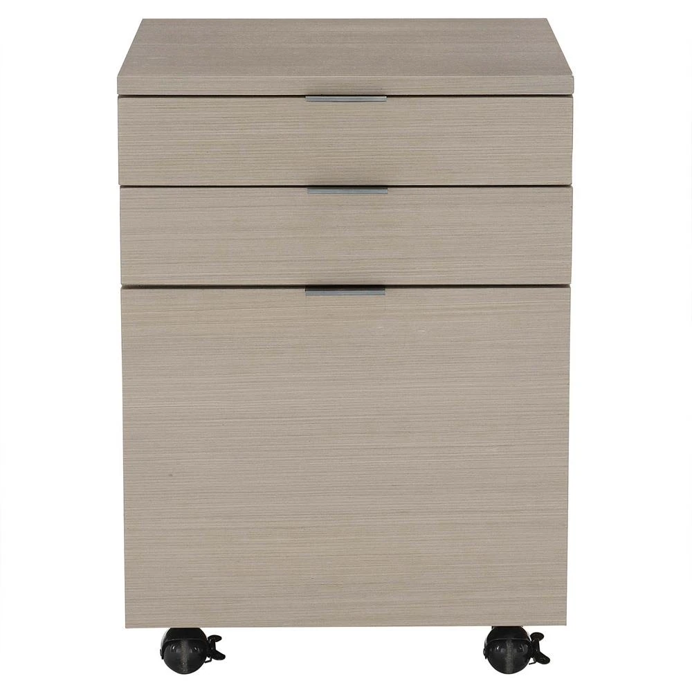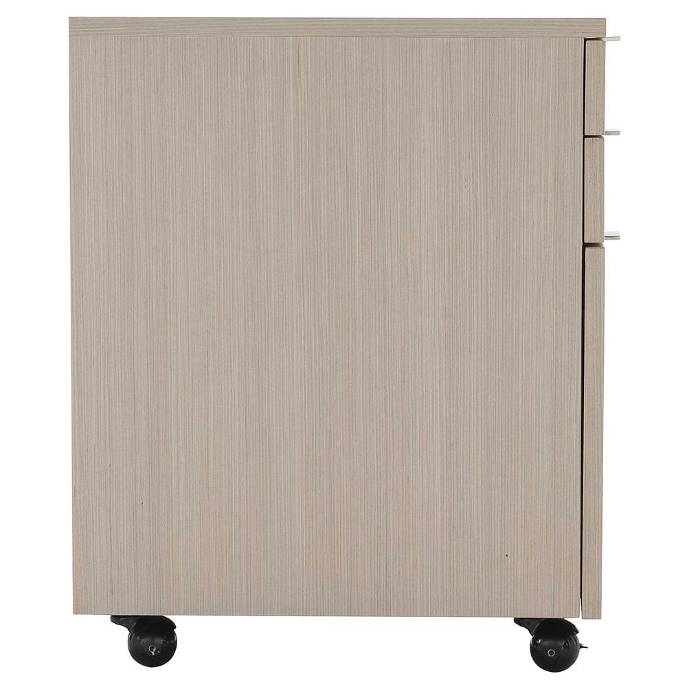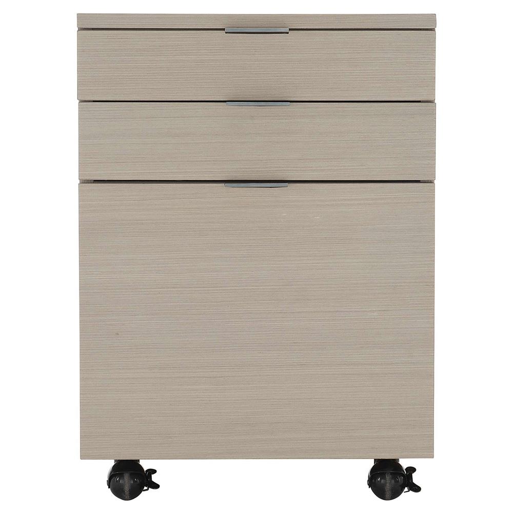 Katherine French Grey Wood Silver Stainless Steel Caster 3 Drawer Office Cabinet