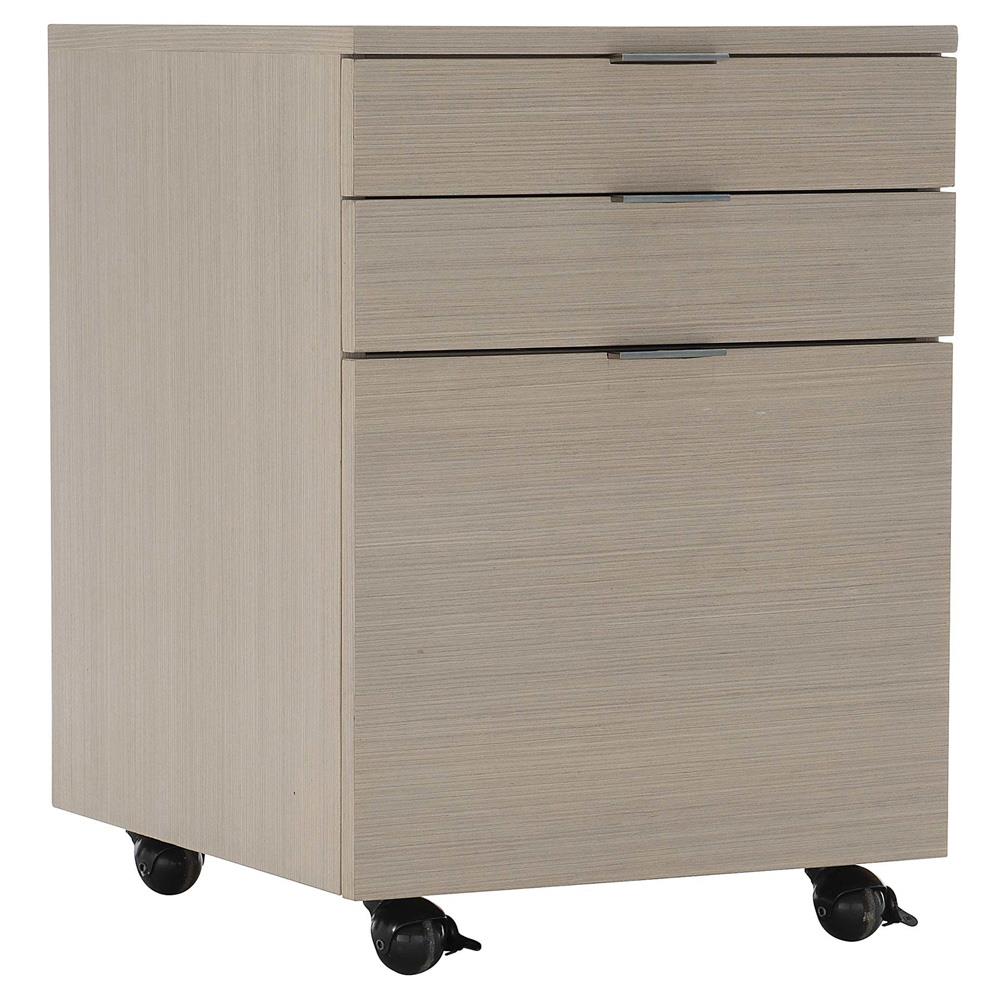 • Katherine French Grey Wood Silver Stainless Steel Caster 2 Drawer Office Cabinet|Kathy Kuo Home