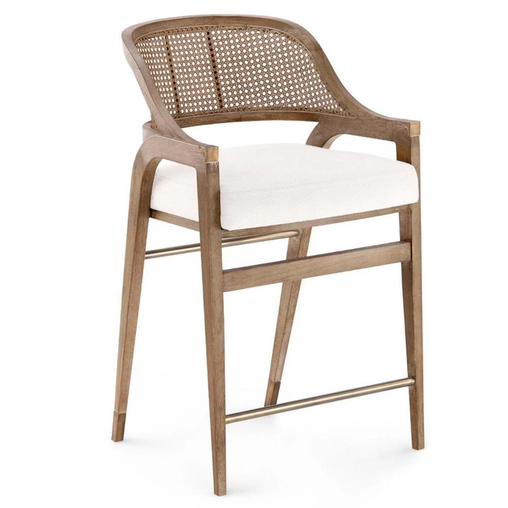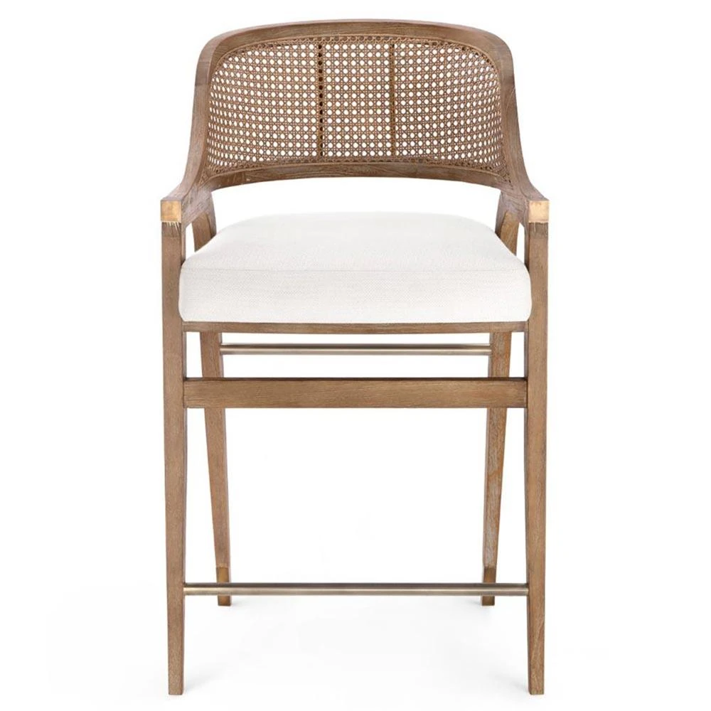 Edward Coastal White Linen Driftwood Mahogany Woven Cane Counter Stool