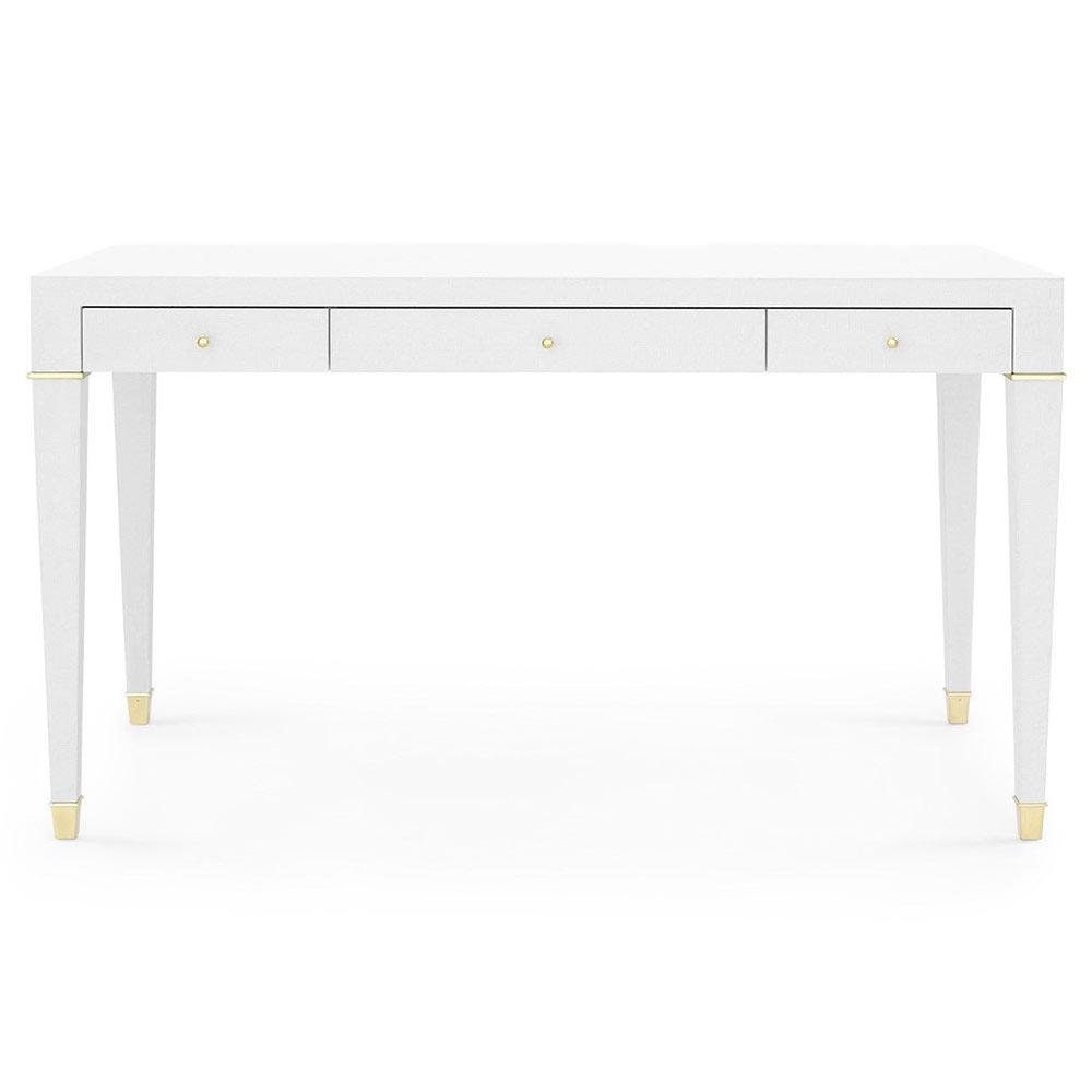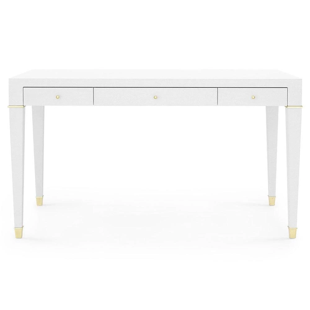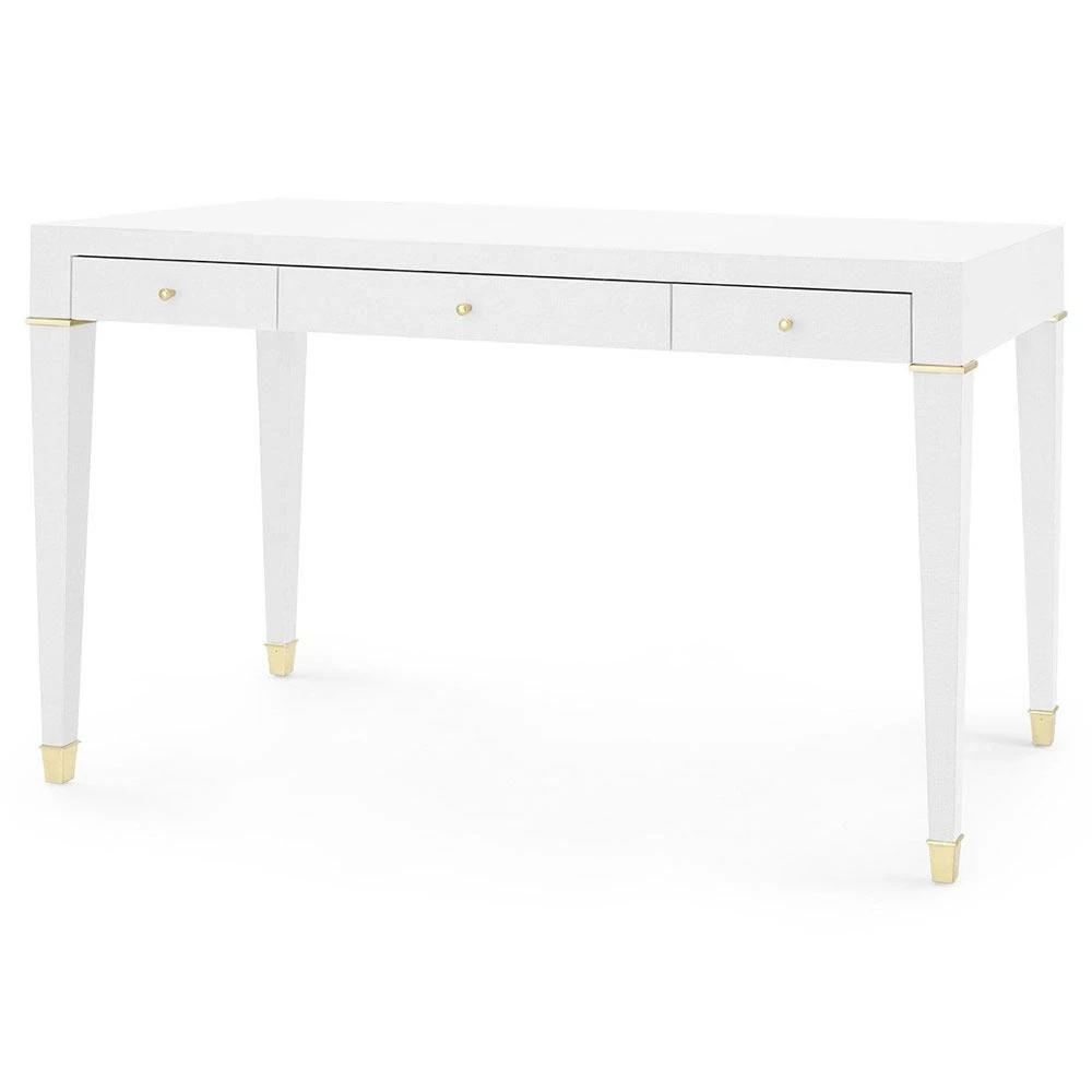 Claudette Modern Wrapped White Linen Brass Accent Office Desk