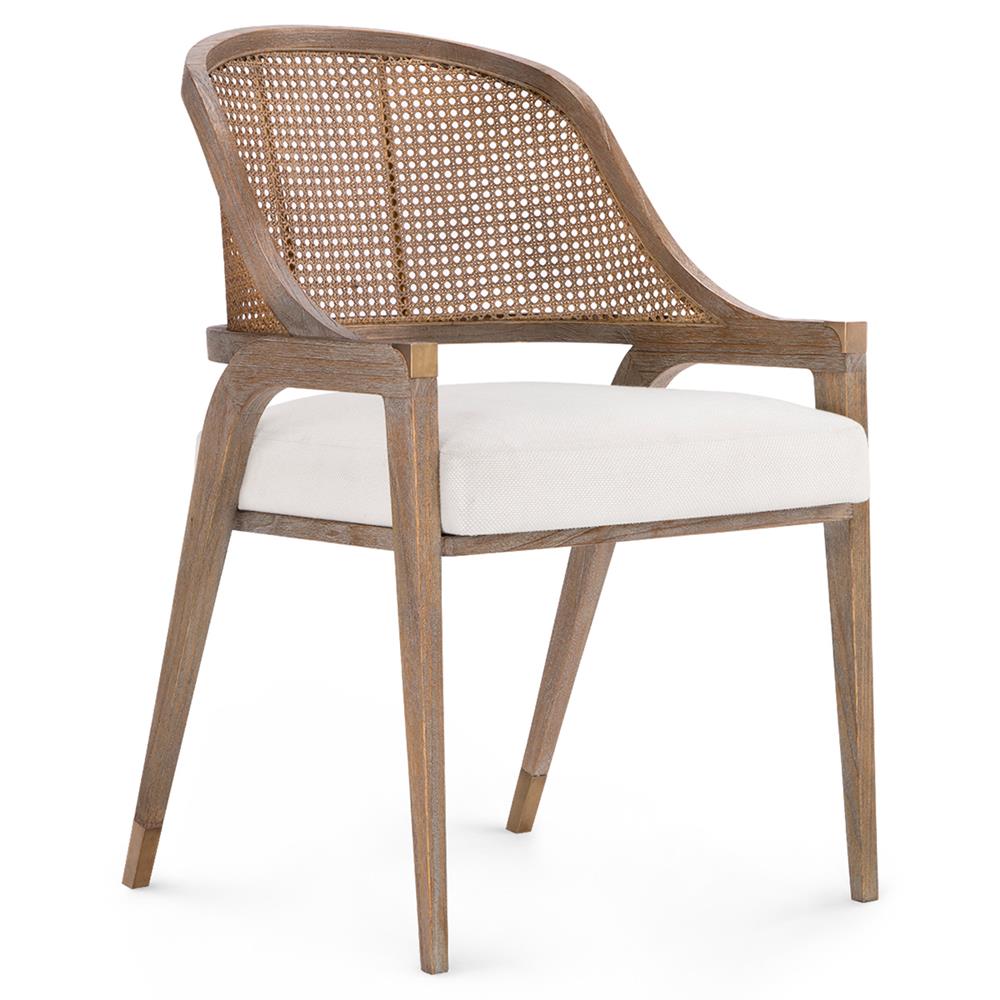 • Judy Coastal Beach White Performance Brown Rattan Dining Arm Chair|Kathy Kuo Home
