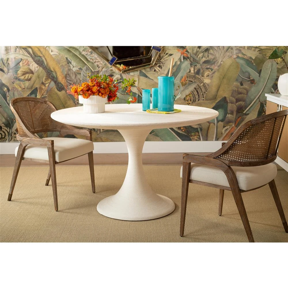• Riona Coastal Beach White Performance Brown Woven Rattan Dining Chair|Kathy Kuo Home